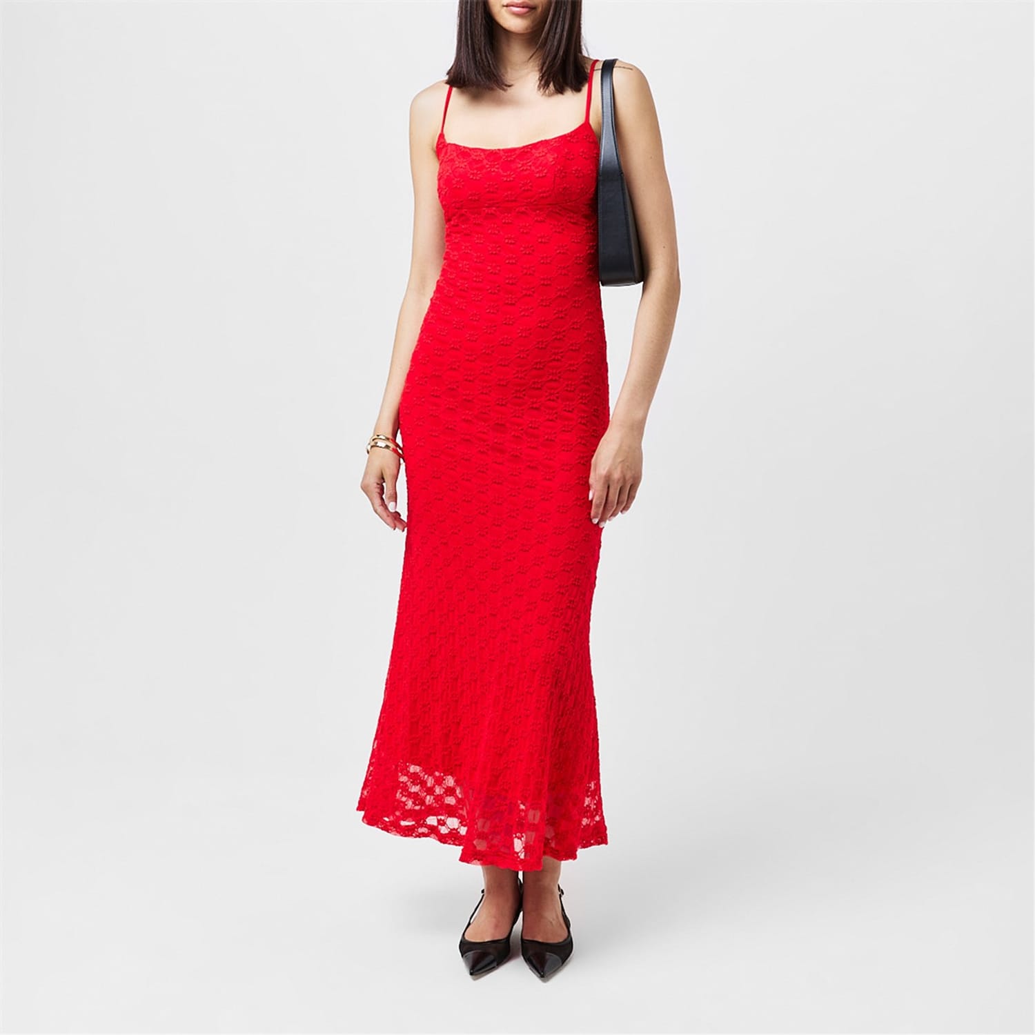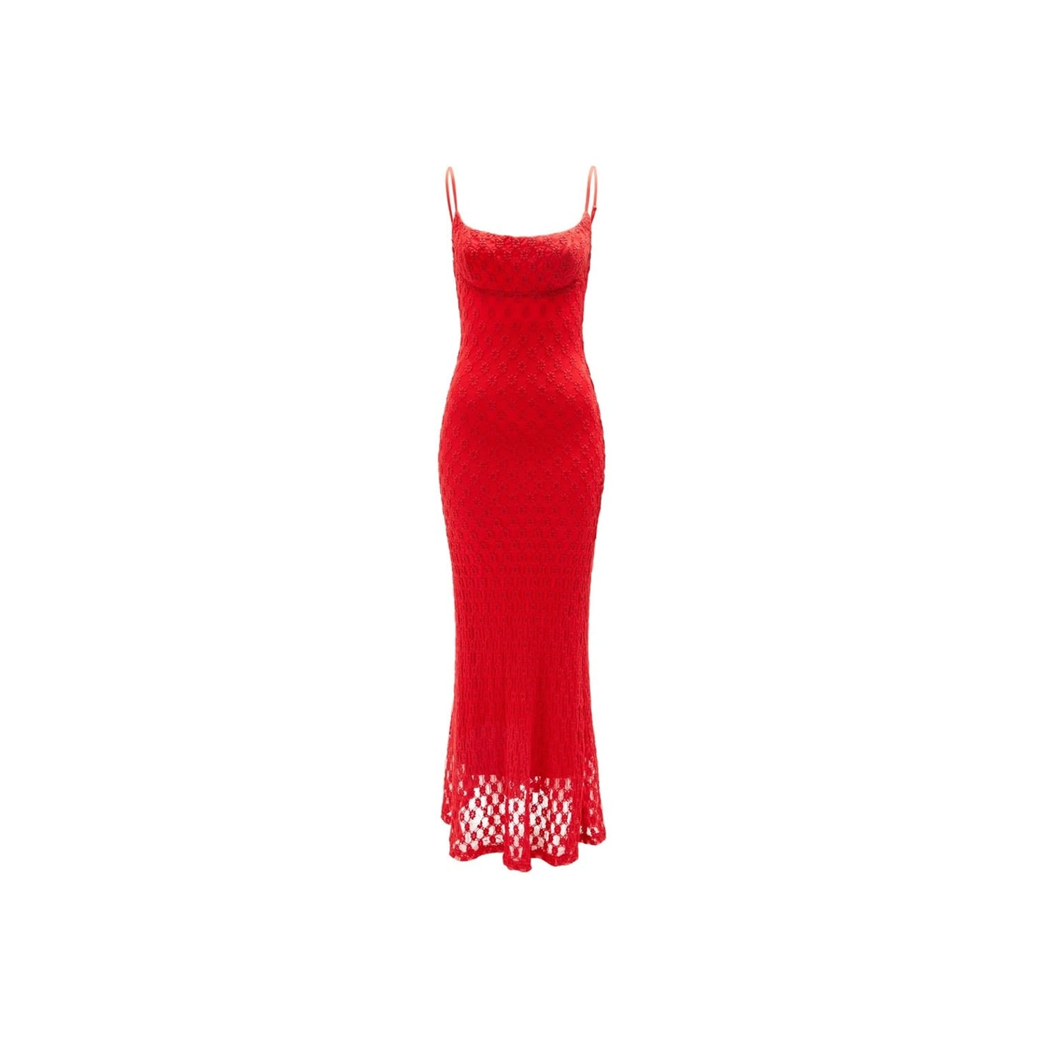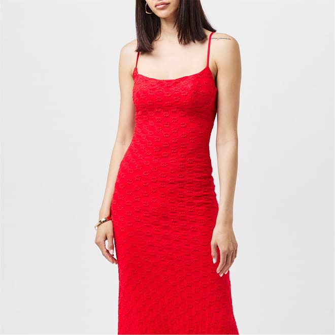 The Adoni Mesh Midi Dress is rendered in a form-sculpting cotton blend. It features a slip-style silhouette with a textural mesh overlay, slim adjustable straps and a softly flared midi skirt. -