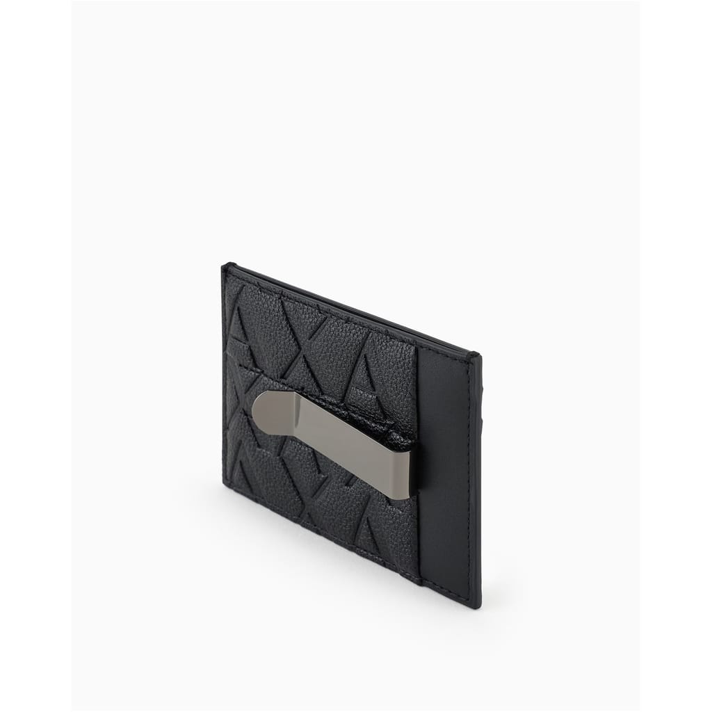 This Armani Exchange card holder is a stylish and practical accessory for organising your essentials. Featuring an open front design, it is adorned with a distinctive monogram and logo embellishment, adding a touch of sophistication. Ideal for those who appreciate both functionality and fashion in their everyday accessories. -