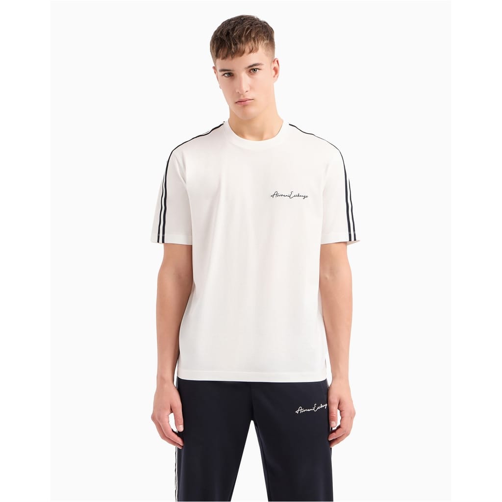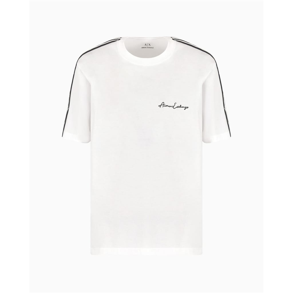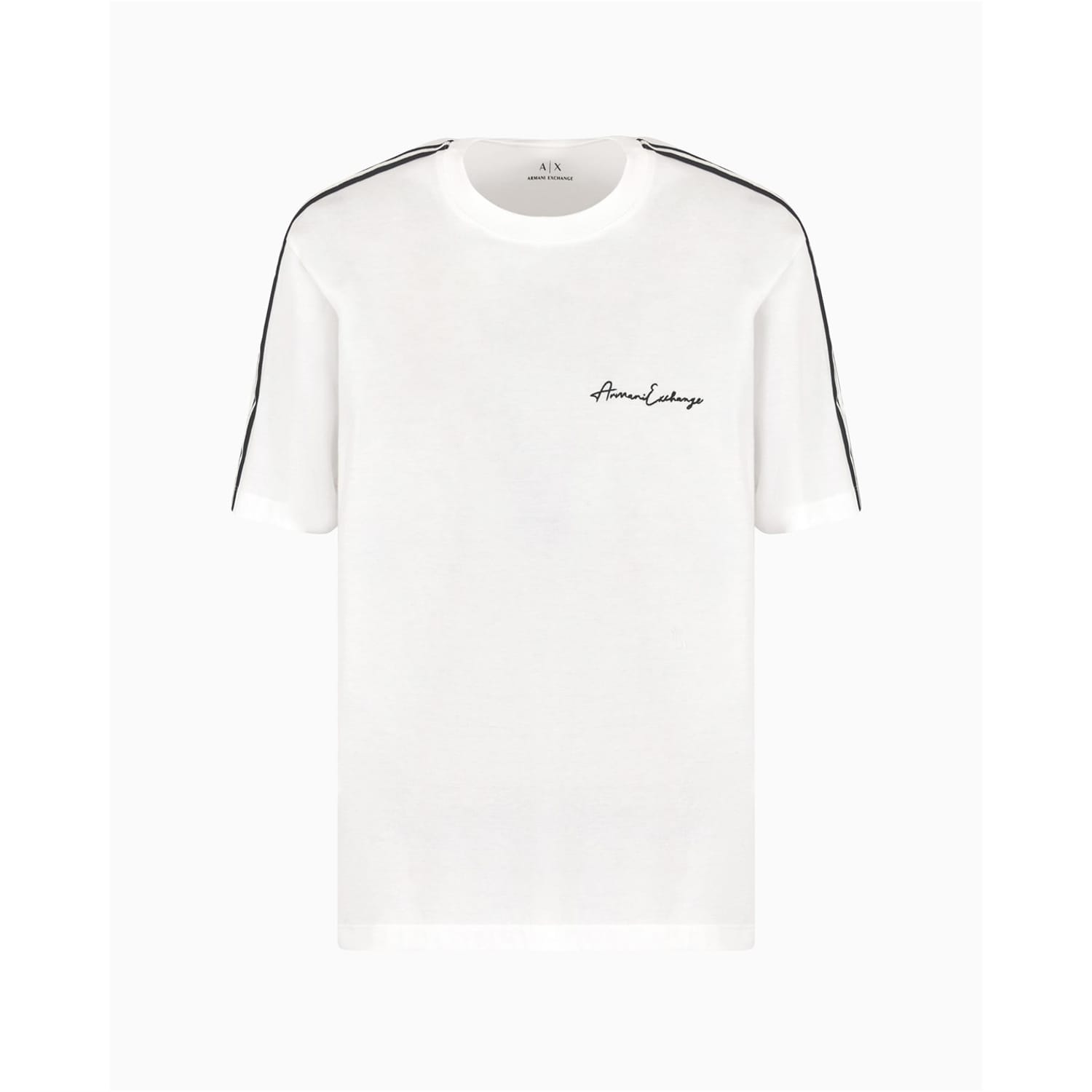 This Armani Exchange top from the casual collection features a regular fit and a solid pattern. It is designed with a crew neck and short sleeves, offering a comfortable and stylish look. The top is embellished with a logo, adding a touch of brand identity. -
