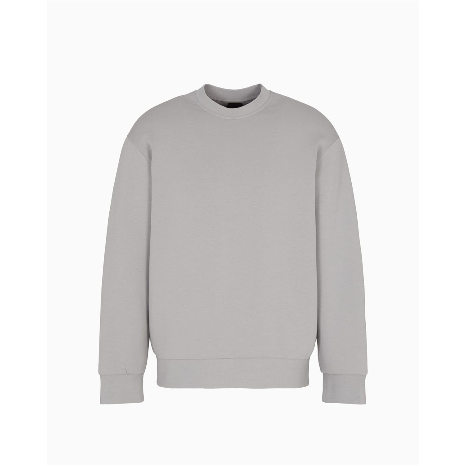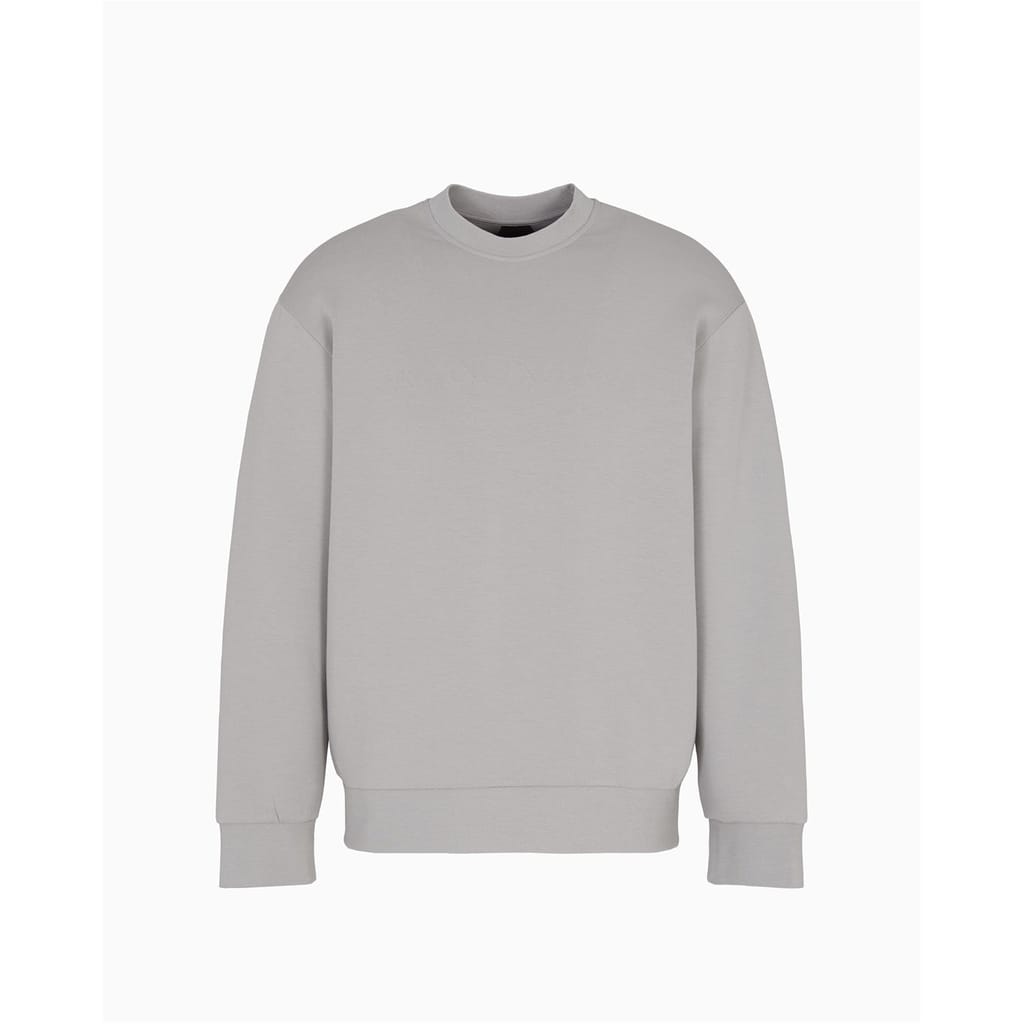 This Armani Exchange top features a solid pattern with a crew neck and long sleeves. Designed in a regular fit, it includes ribbed cuffs for added comfort. The top is embellished with a logo, adding a touch of brand identity. -