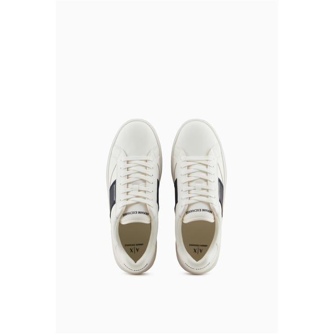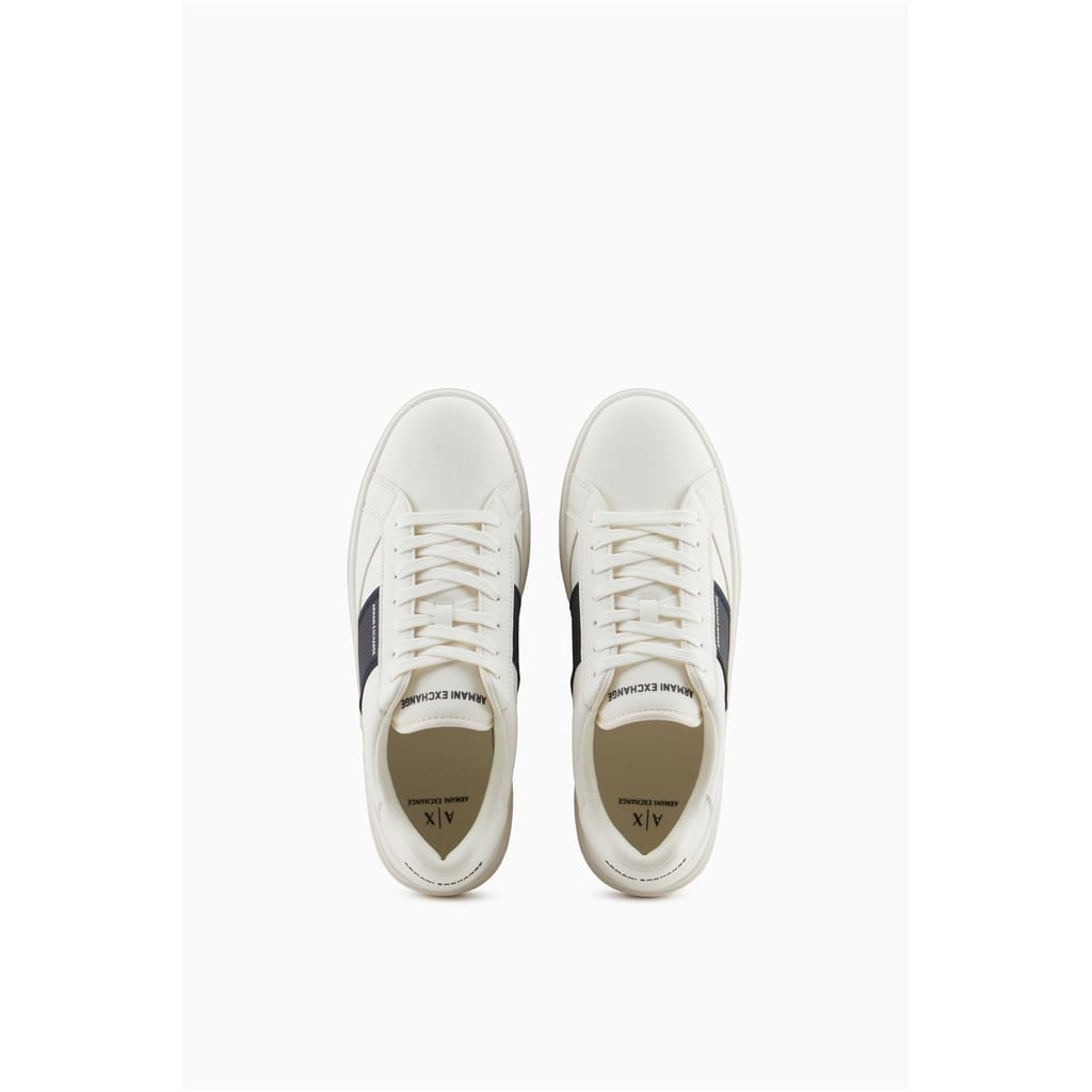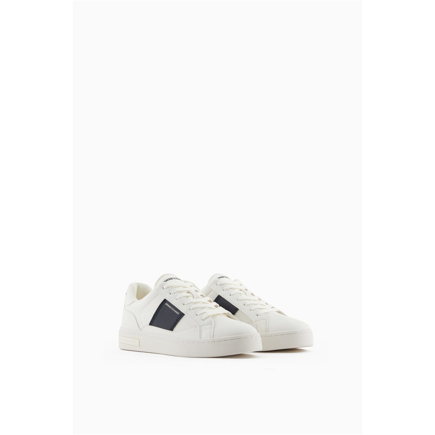Discover the sleek design of Armani Exchange low-top sneakers, perfect for those who appreciate understated style. These shoes feature a classic round toe, offering both comfort and a timeless look. Ideal for casual outings, they embody the essence of modern footwear with a touch of elegance. -