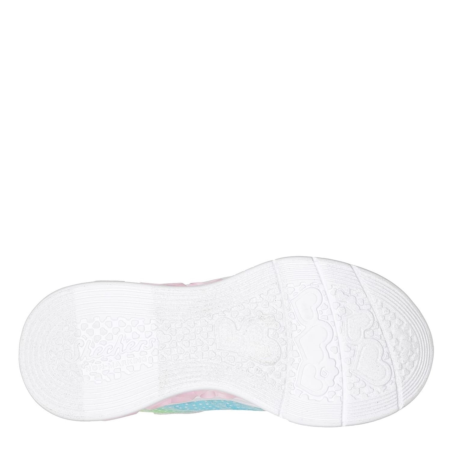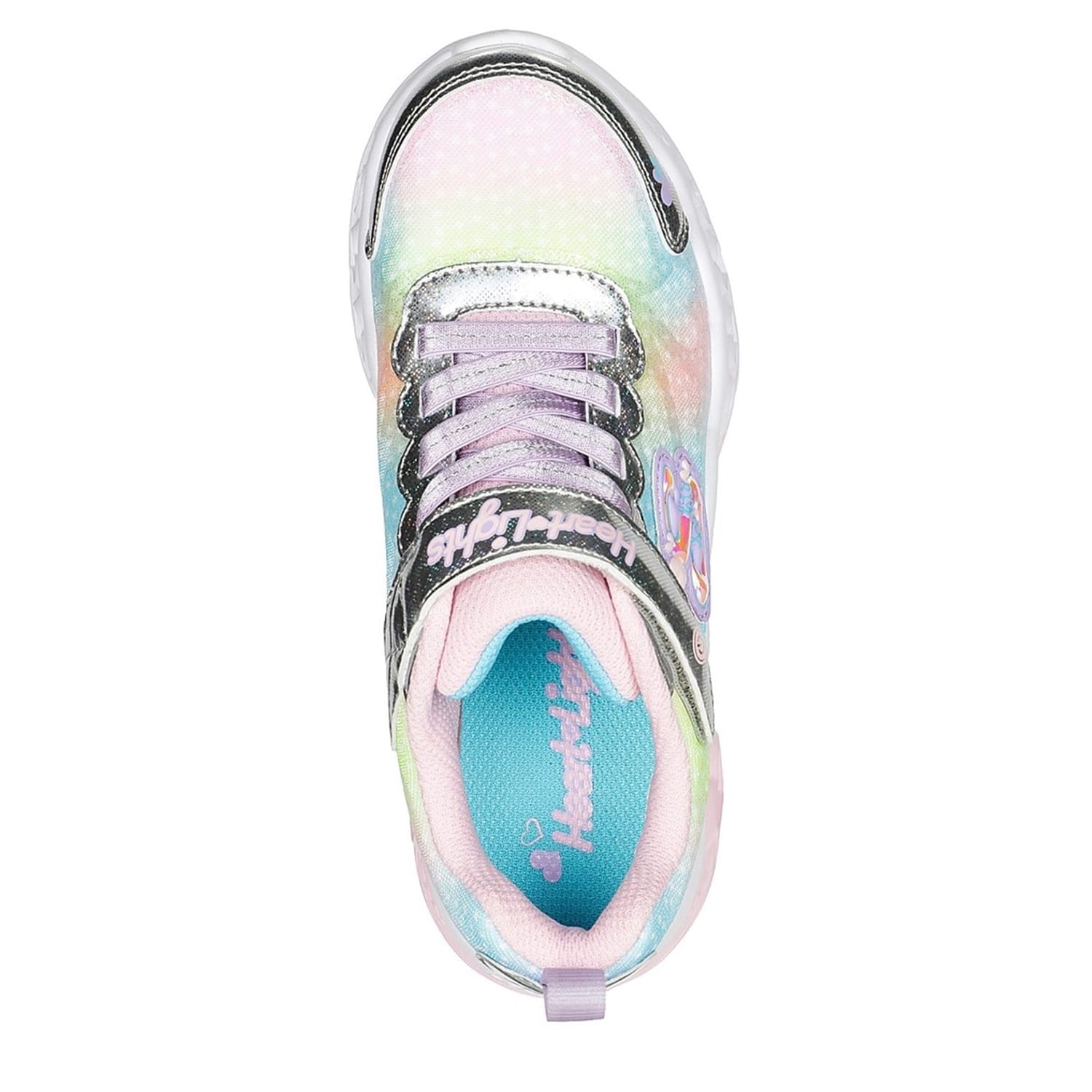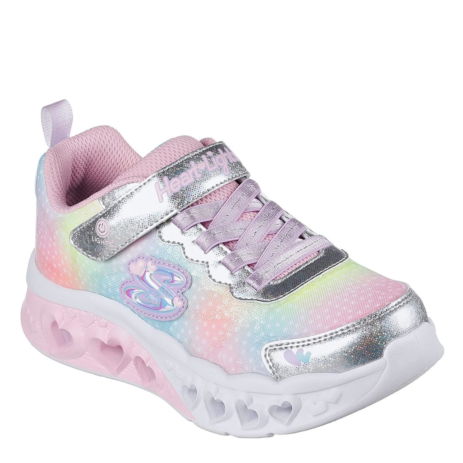 Refresh your little one's footwear rotation with this vibrant addition. This casual lightweight shoe is constructed from shock-absorbing cushioned midsole with heart details, soft fabric shoe lining and cushioned comfort insole with flexible rubber traction outsole. The pair feature Velcro, lace-up fastening, sequin embellished fabric and glitter synthetic upper with a light-up midsole. The look is completed from the iconic Skechers logo embroidered on the upper and branding on the heel. -
