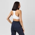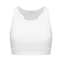 -- Cut in a cropped silhouette providing a medium level of support, the racer-back silhouette cut with a scoop neckline allows for a wide range of motion.