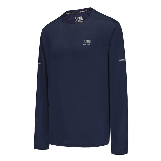This Karrimor Long Sleeve Run T Shirt is crafted with long sleeves and a crew neckline for a classic look. It features flat lock seams to prevent chafing and is a lightweight construction. This t shirt is a solid colouring throughout designed with a signature logo and is complete with Karrimor branding. -