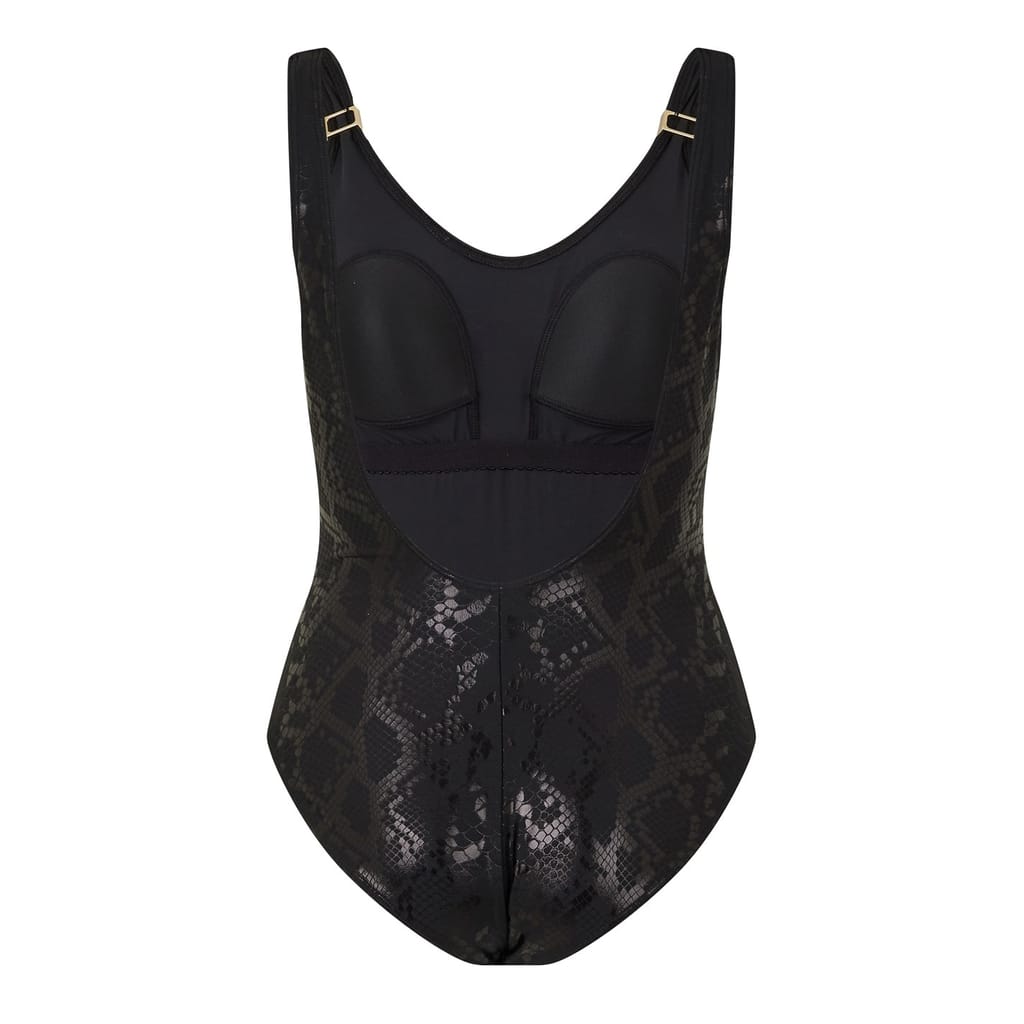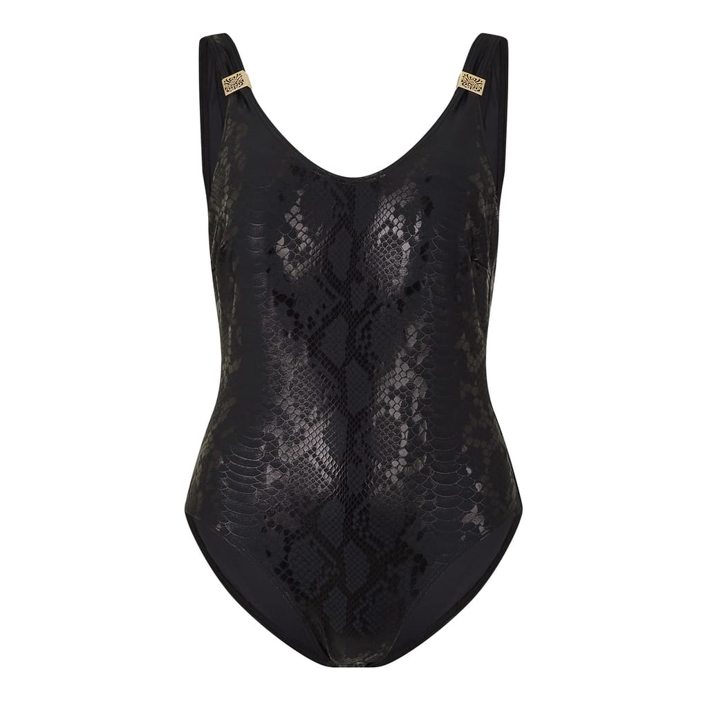 Dive into style with Biba's one-piece swimwear, perfect for swimming and beach collections. This piece features a striking snake skin textured pattern, adding a unique touch to your swimwear collection. The monogram embellishment enhances its sophisticated appeal, making it a standout choice for any water activity. -