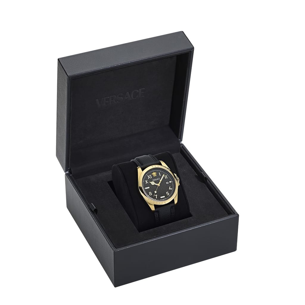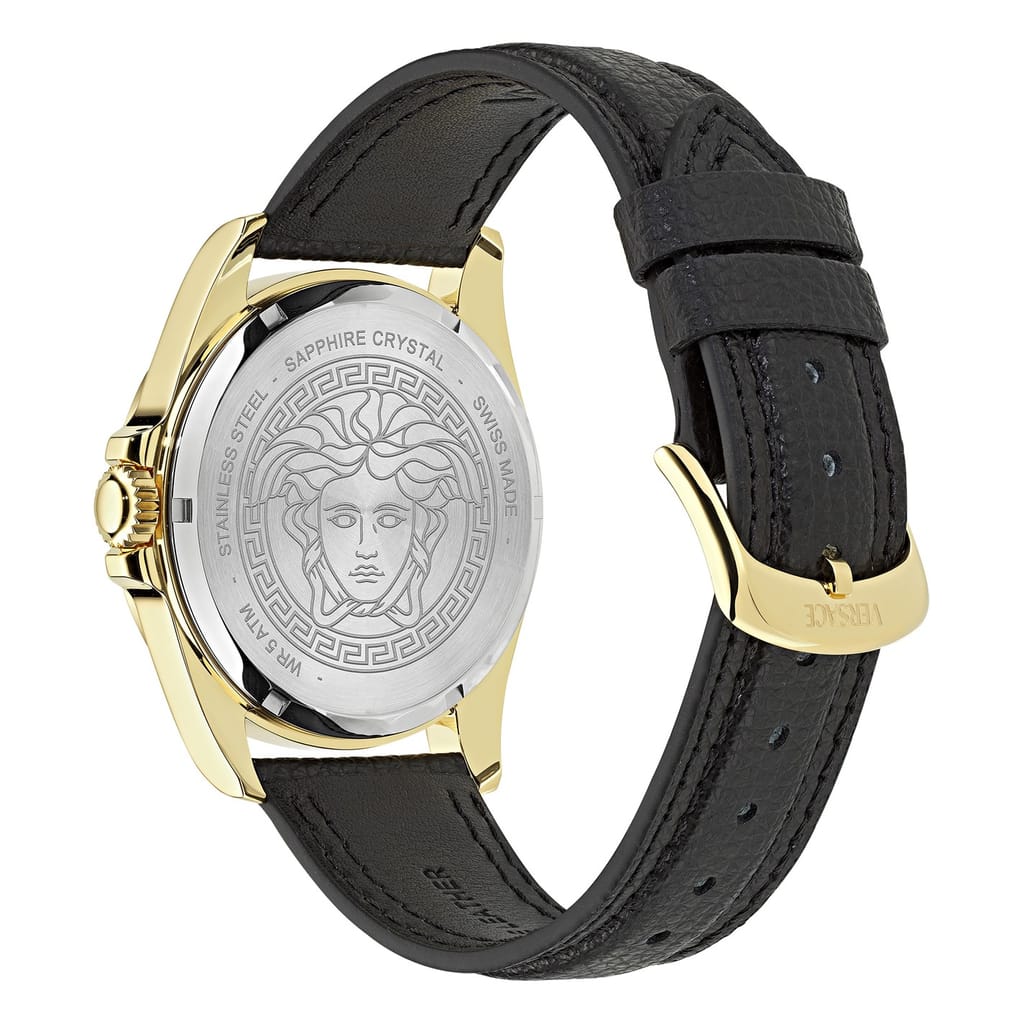 Discover the elegance of Versace with this wrist watch, featuring a sleek black dial and an analogue display. The leather strap adds a touch of sophistication, while the 50m water resistance ensures durability. Part of the casual collection, this watch is a perfect blend of style and functionality. -