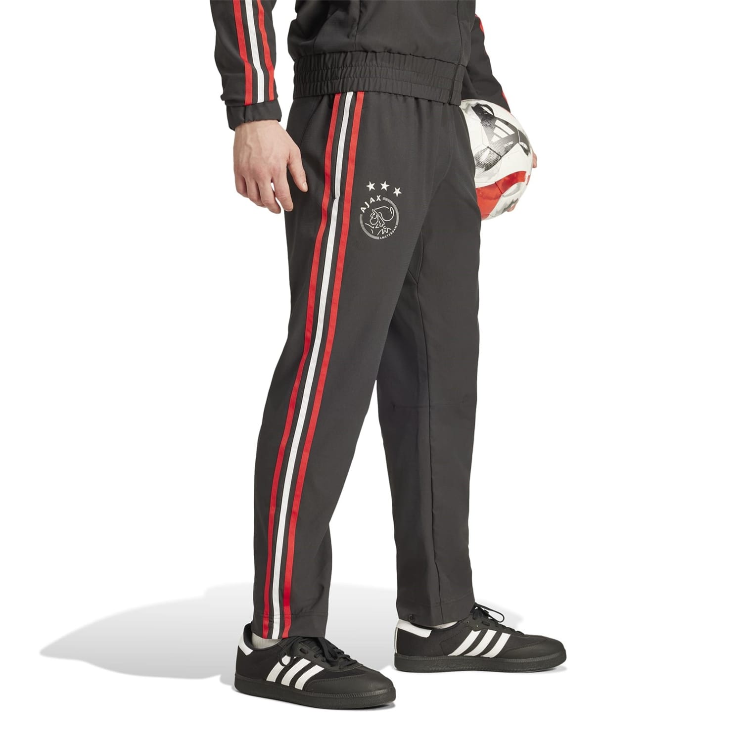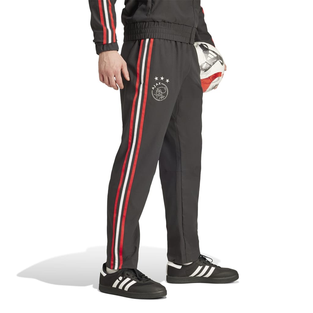 Back your club in classic Amsterdam style. These Ajax Amsterdam pants are part of a cycling-inspired football collection from adidas. Ankle snaps hold the cuffs in place, keeping them clear of the chain. But it's that golden club badge that will make these pants your go-to when it's time to climb onto the saddle.