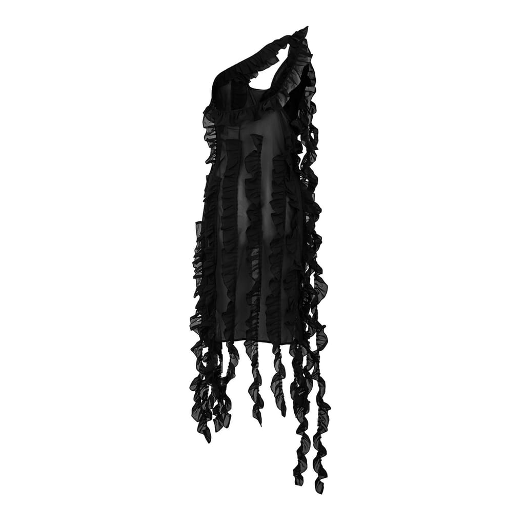 Discover the Amylynn blouse, a chic sleeveless top featuring a trendy one-shoulder design. This stylish piece is adorned with ruffle embellishments, adding a touch of flair to your wardrobe. Elevate your fashion game with this sophisticated and elegant top, perfect for various occasions. -