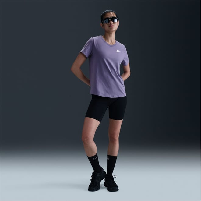 The Nike Sportswear Women's Club T-Shirt is a must have for any workout attire, benefitting from a lightweight construction with a crew collar and short sleeves, this piece also boasts flat lock seams that help to reduce skin irritation. Dri-Fit technology helps wick sweat away from the skin to leave you feeling dry and focused, finished off with the classic Nike Swoosh branding to the chest. -