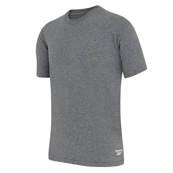 This Reebok T Shirt is crafted with short sleeves and a crew neck for a classic look. It features a ribbed trims for comfort and is a lightweight construction. This t shirt is designed with a signature logo and is complete with Reebok branding.