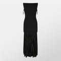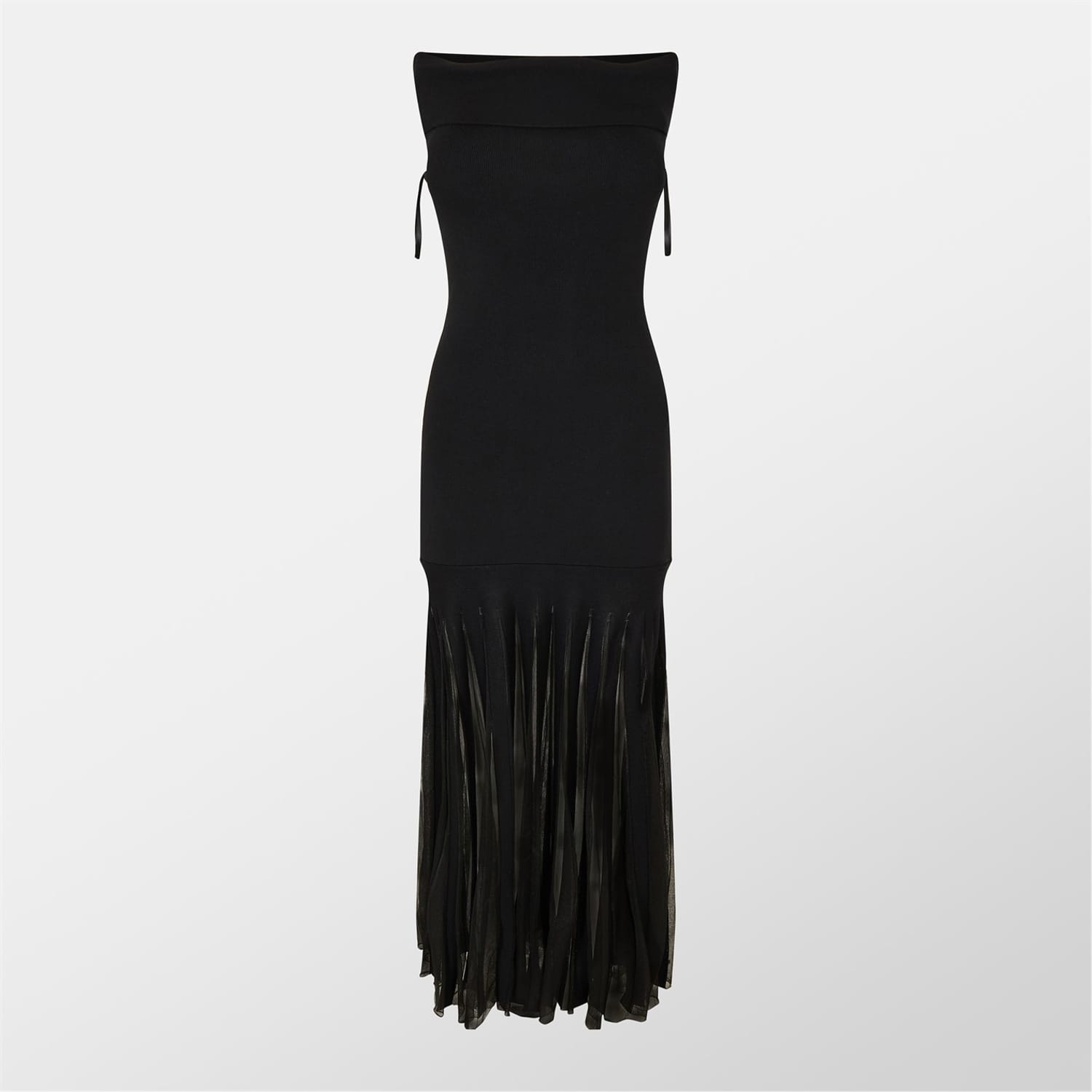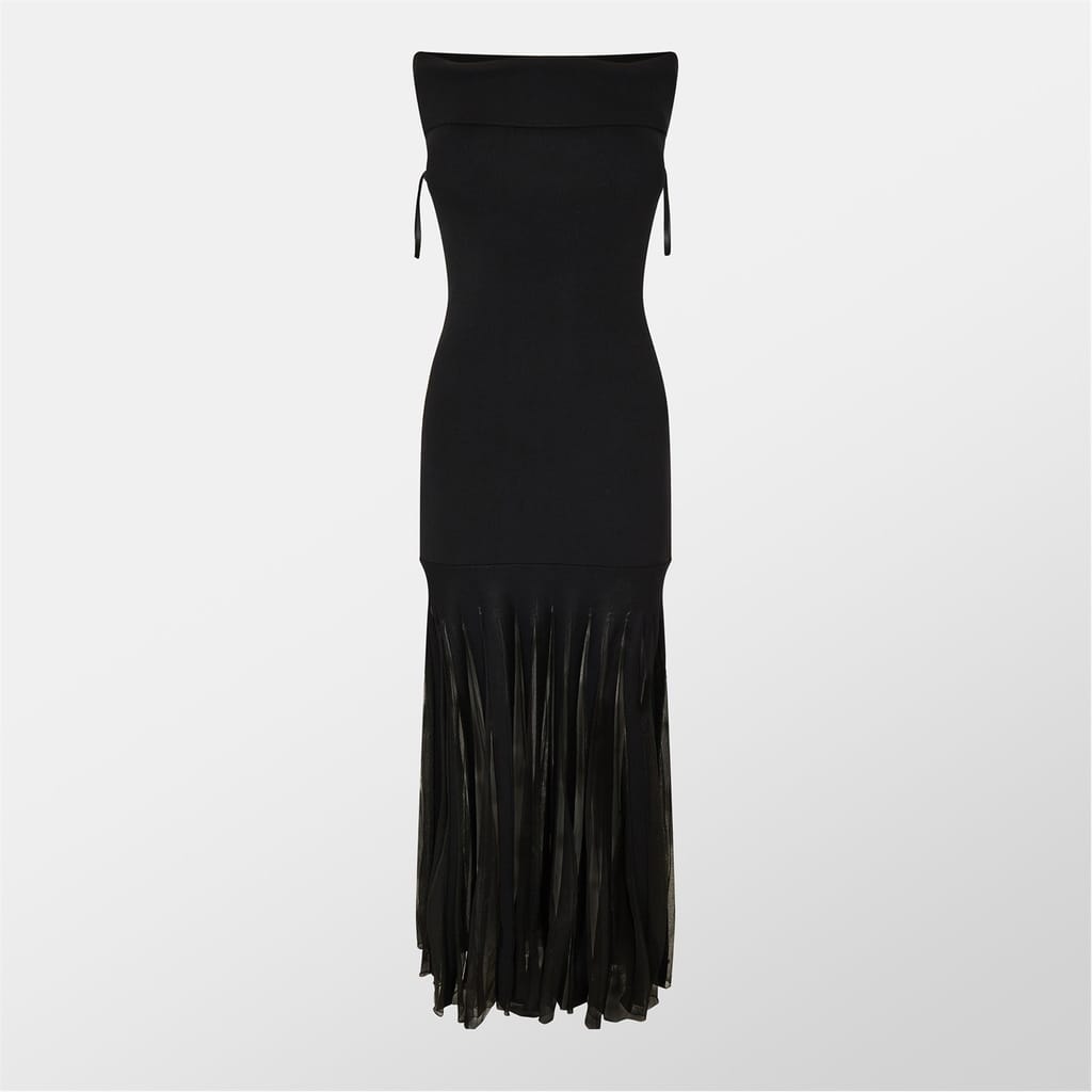 This Ted Baker maxi dress is a stunning slip style, featuring an off-the-shoulder neckline and a slim fit. The solid pattern is elegantly complemented by ruffle embellishments, creating a sophisticated look for any occasion. -