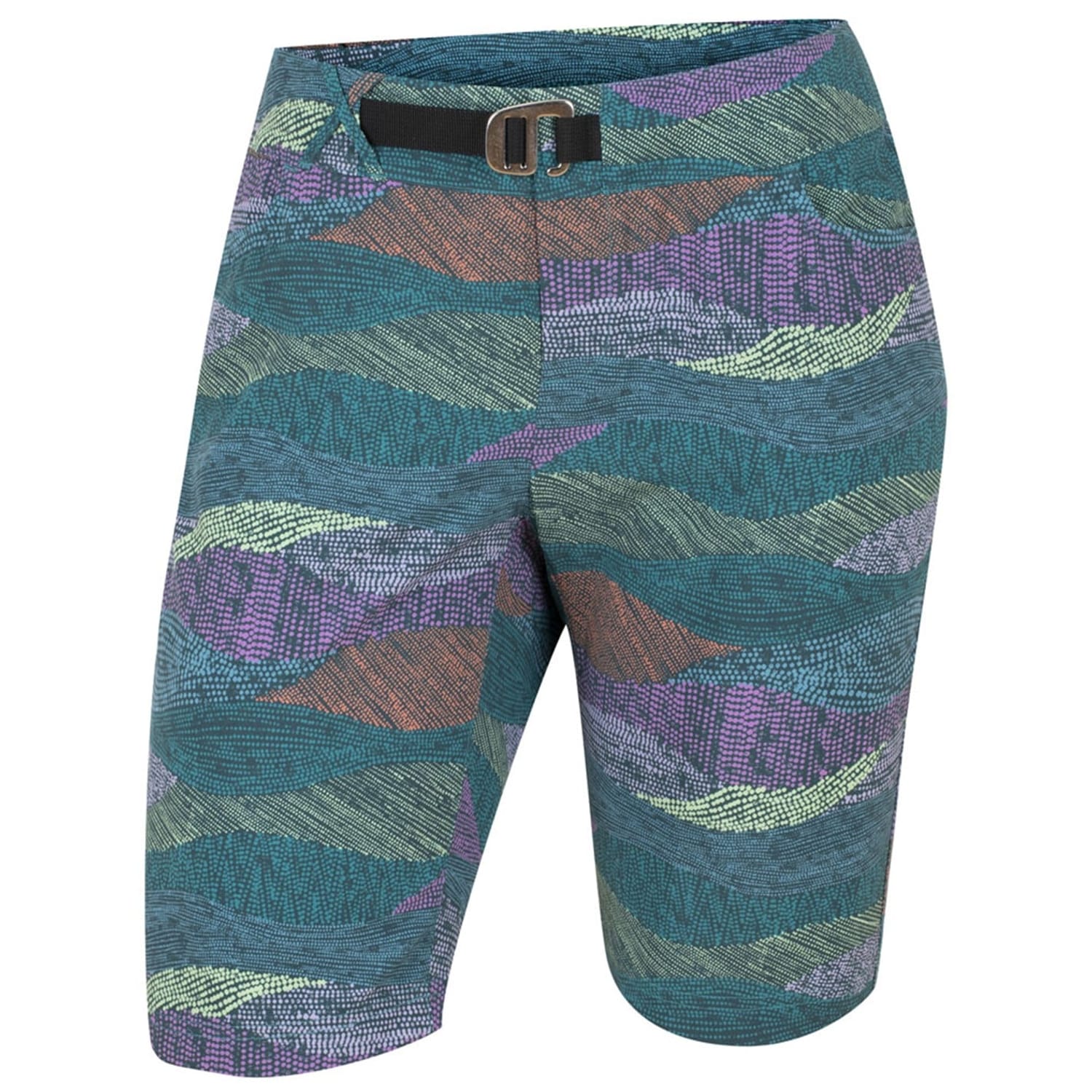 Discover the Pearl Izumi Summit shorts, designed for biking enthusiasts. These athletic shorts feature an abstract pattern and are part of the activewear collection. Equipped with a belt closure, they ensure a secure fit. The shorts are embellished with a logo, adding a touch of brand identity to your activewear ensemble. -