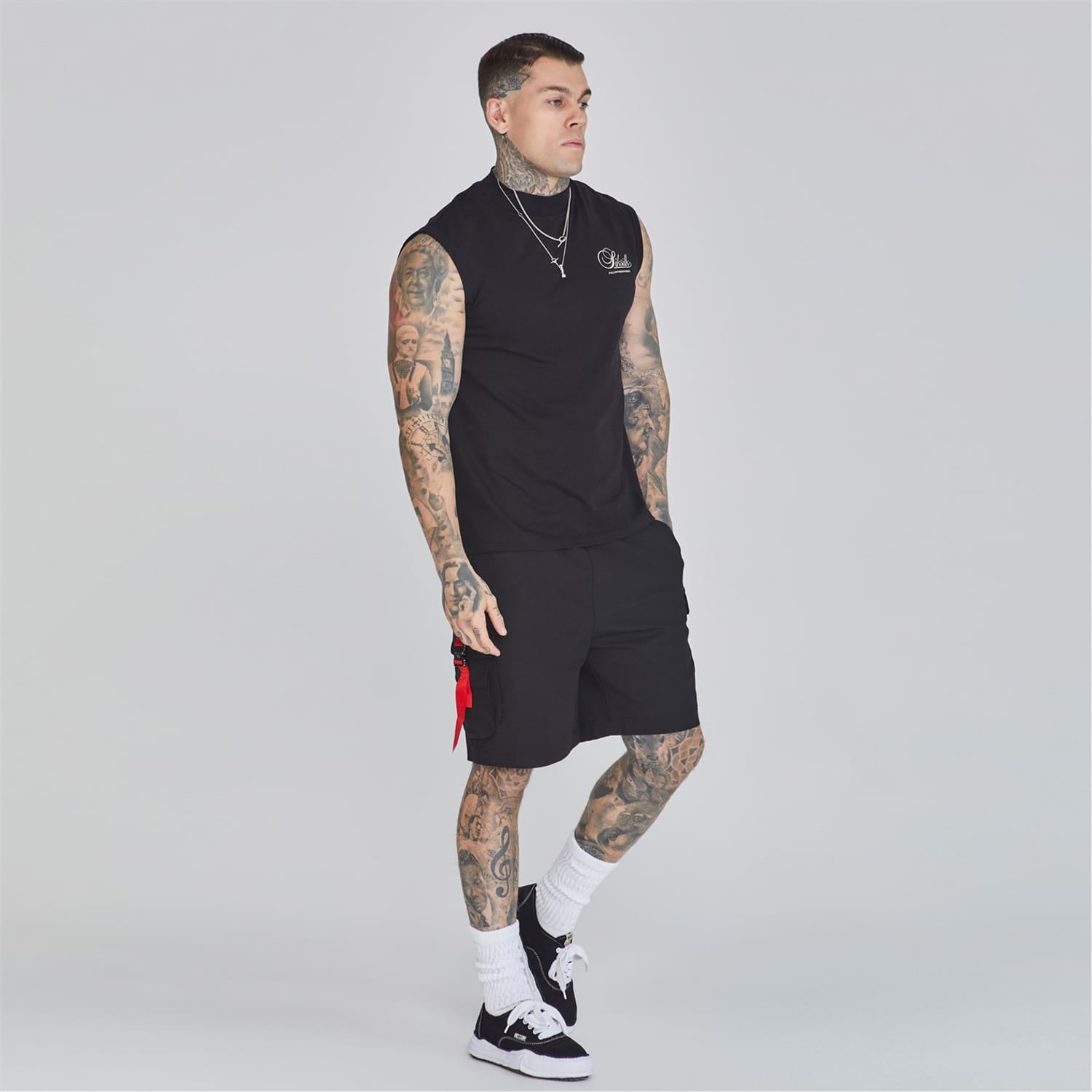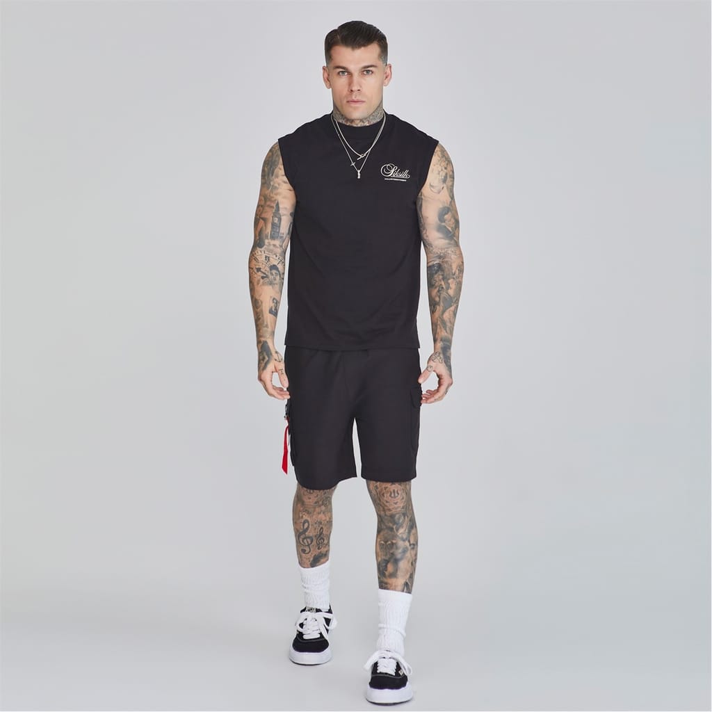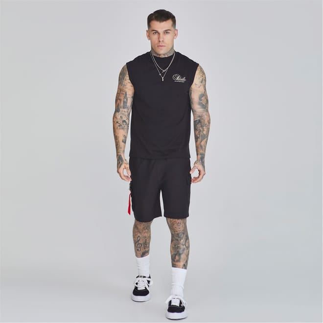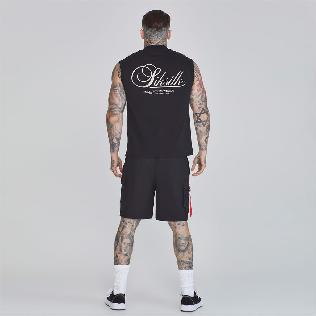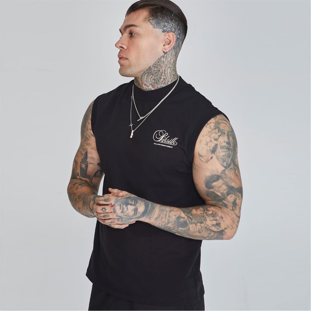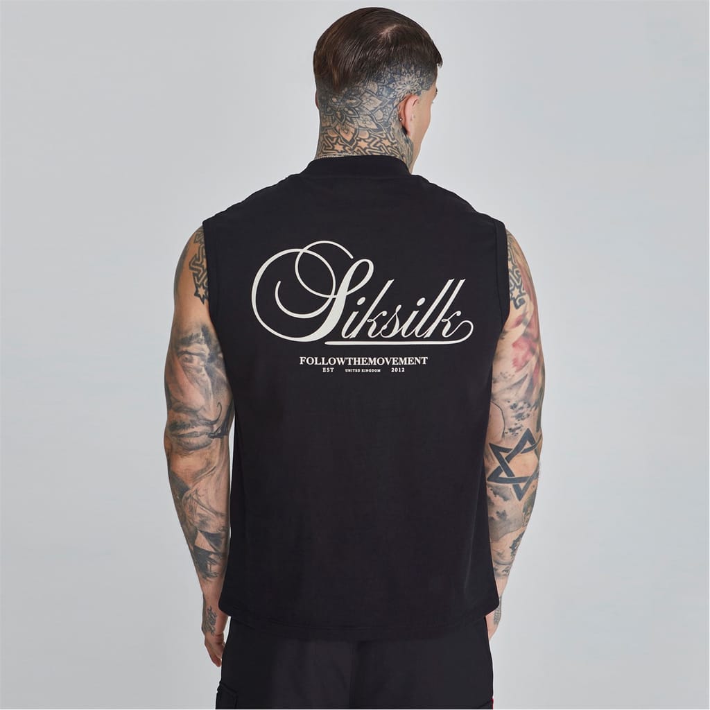 This sleeveless top from SikSilk features a solid pattern with a mock neck design. The regular fit ensures comfort, while the racerback style adds a sporty touch. Embellished with a large genie graphic and lettering, it also showcases the brand's logo. Ideal for casual collections, this top combines style and functionality. -