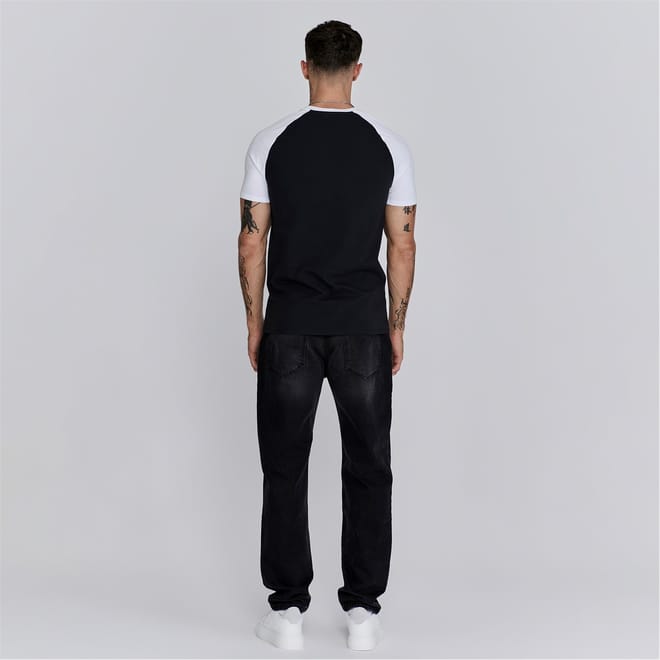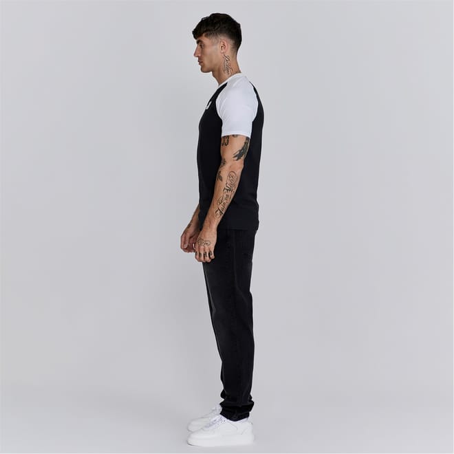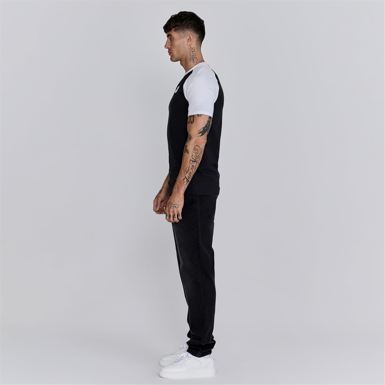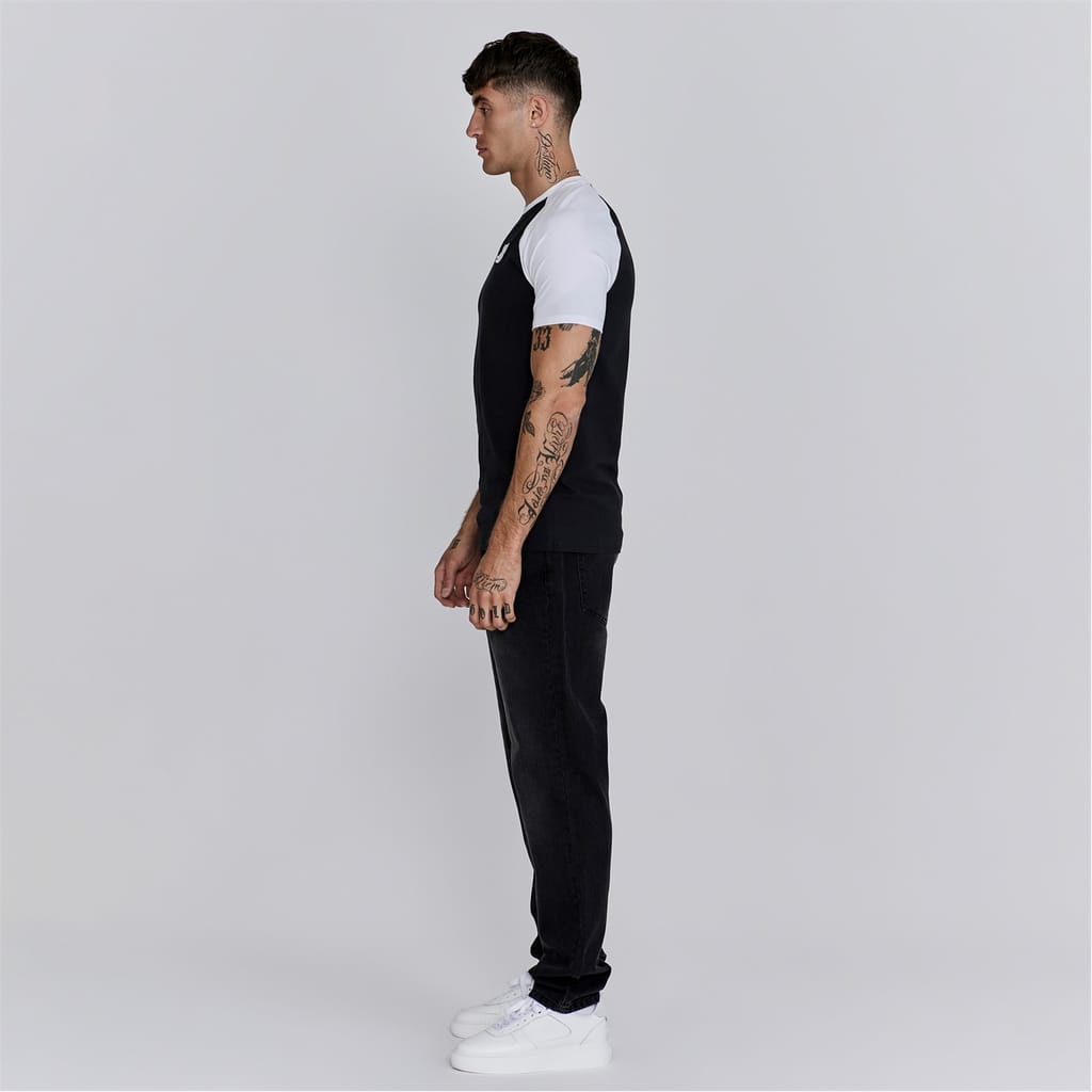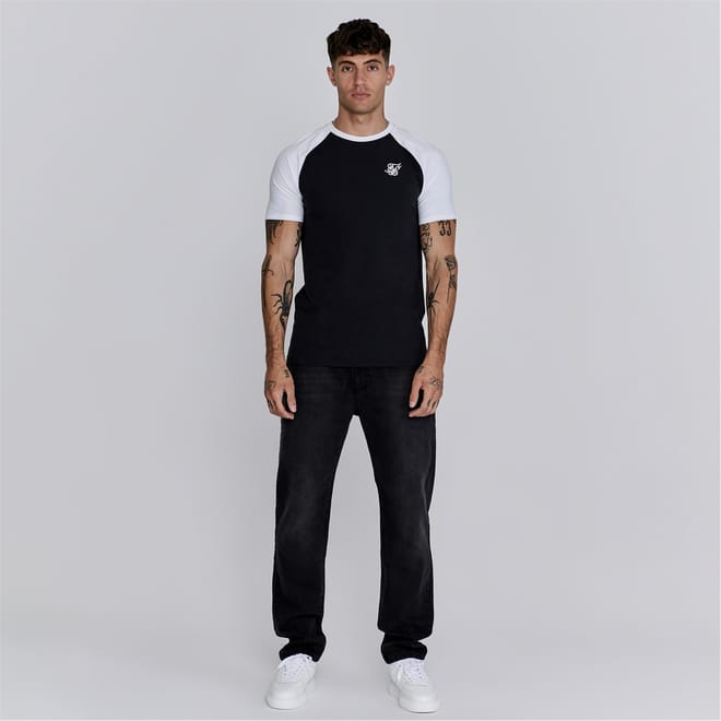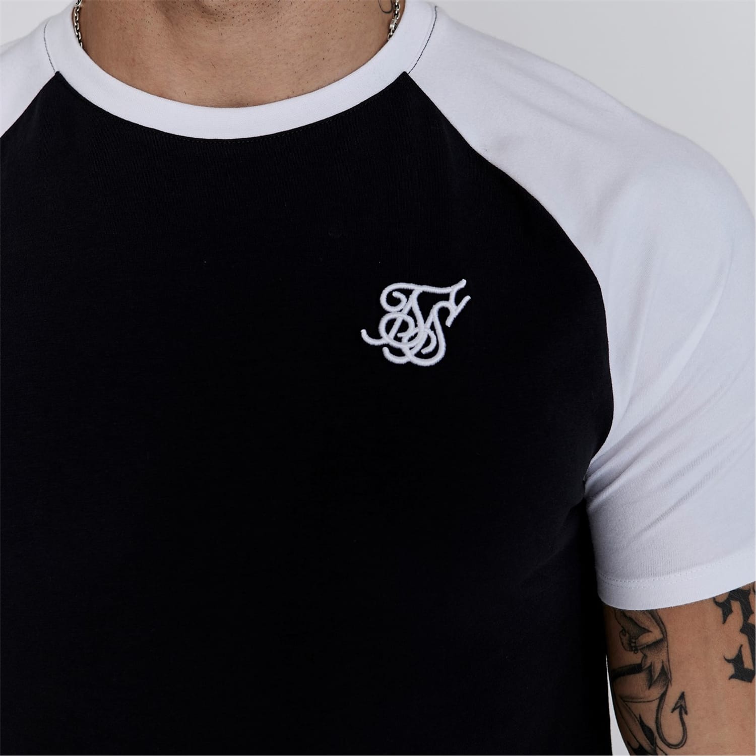 This SikSilk top is a casual essential, featuring a regular fit and short raglan sleeves. The crew neck design is complemented by a striking color block pattern, while the logo embellishment adds a distinctive touch. -