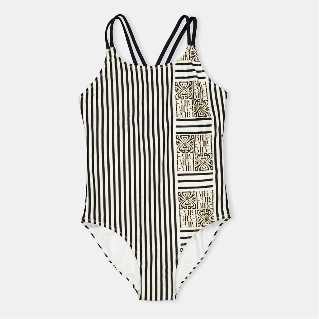 Discover the Biba one-piece swimwear, featuring a stylish stripe pattern and a unique cross-back design. This elegant piece combines fashion and functionality, making it a perfect choice for your swimwear collection. -