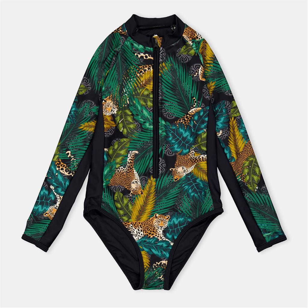 Discover Biba's one-piece swimwear, featuring a striking animal pattern. This stylish piece is designed with a convenient zipper closure and is adorned with a subtle logo embellishment, adding a touch of elegance to your swimwear collection. -