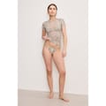 This Good American top for babies features a striking snake skin texture and mesh details. Designed with a crew neck and short sleeves, it offers a slim fit for a stylish look. -