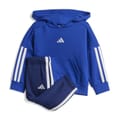 Whether your infant's day includes a play date, a nap or both, this comfortable jogger set from adidas has them covered. The cosy fleece build keeps them warm and ready for adventure, while ribbed cuffs and an elastic waist provide a secure fit. Iconic 3-Stripes add sporty style.
