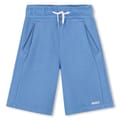 These Boss infant shorts are a perfect blend of style and comfort. Featuring a solid pattern, they come with a drawstring closure for easy wear. The shorts are adorned with a logo embellishment, adding a touch of brand identity. Ideal for casual collections, these bermuda shorts are designed for the little ones. -