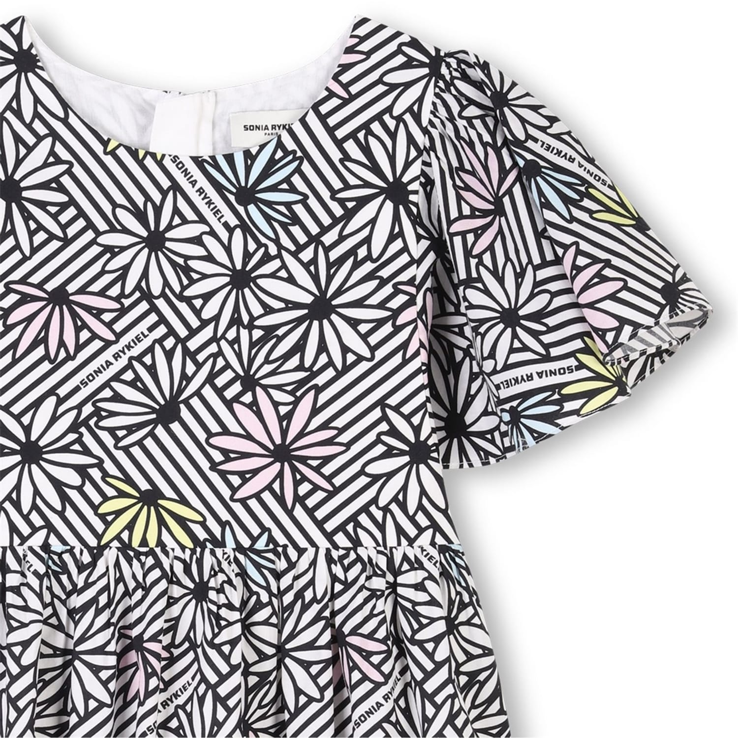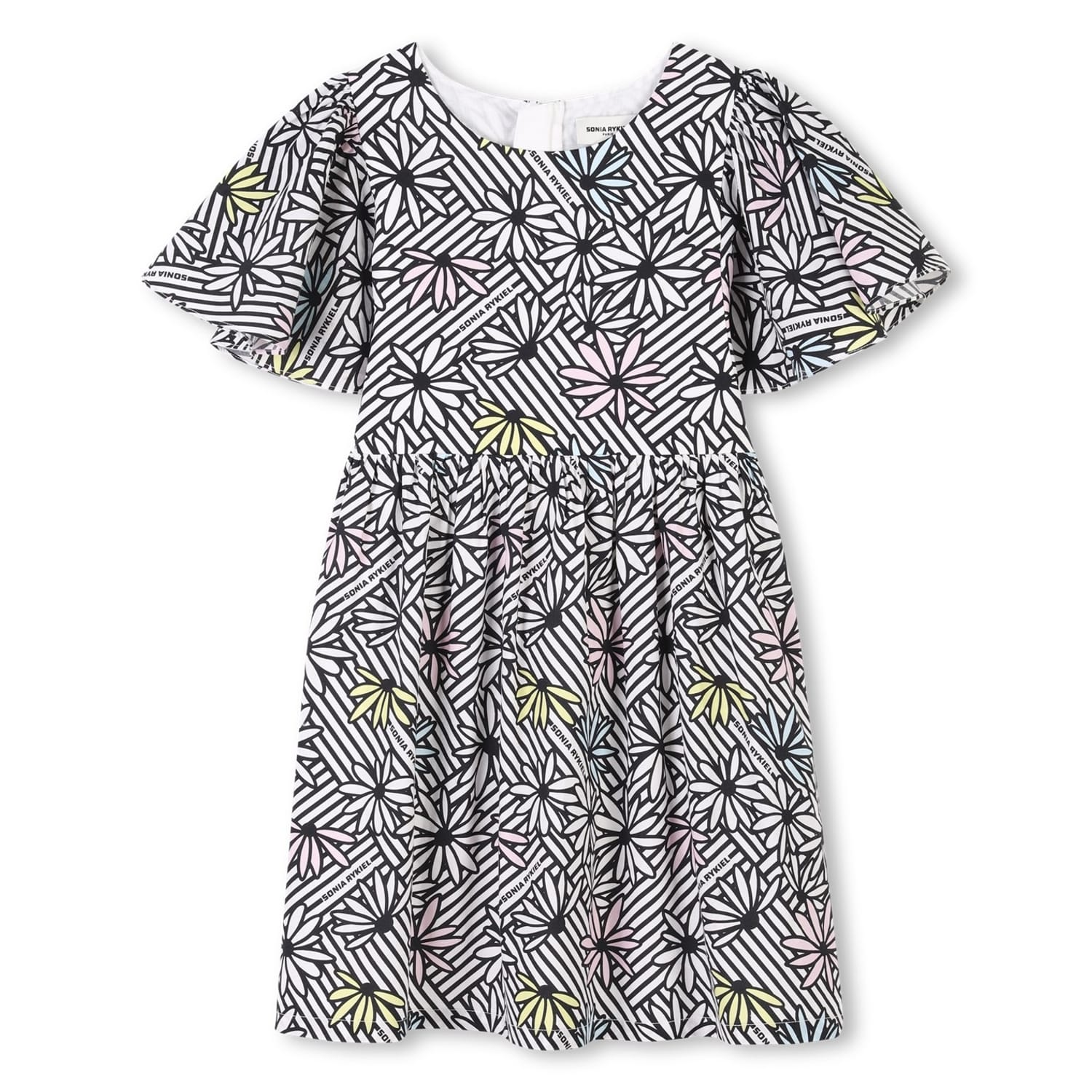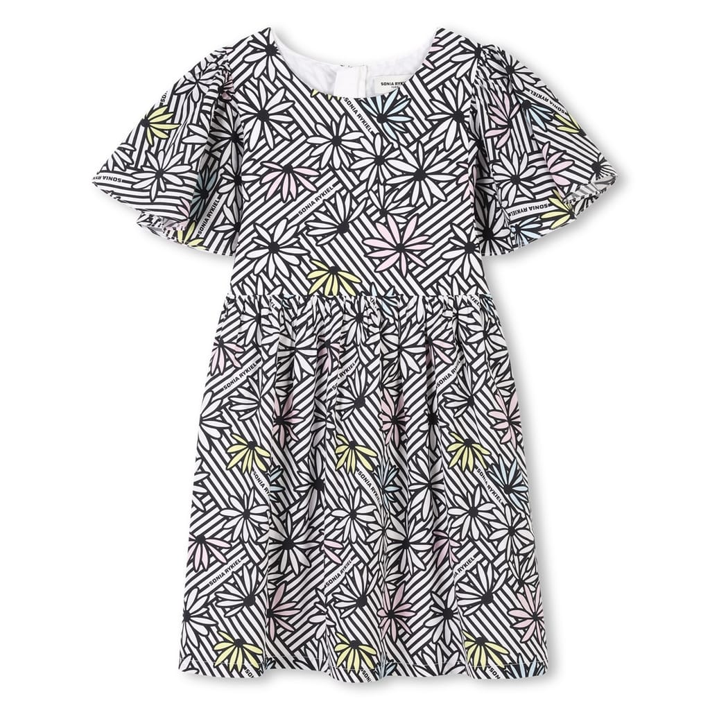 This Sonia Rykiel knee-length dress combines the casual appeal of a t-shirt style with a charming floral pattern. Featuring a crew neck and flutter short sleeves, it offers a relaxed yet stylish look. Perfect for those who appreciate a blend of comfort and elegance in their wardrobe. -