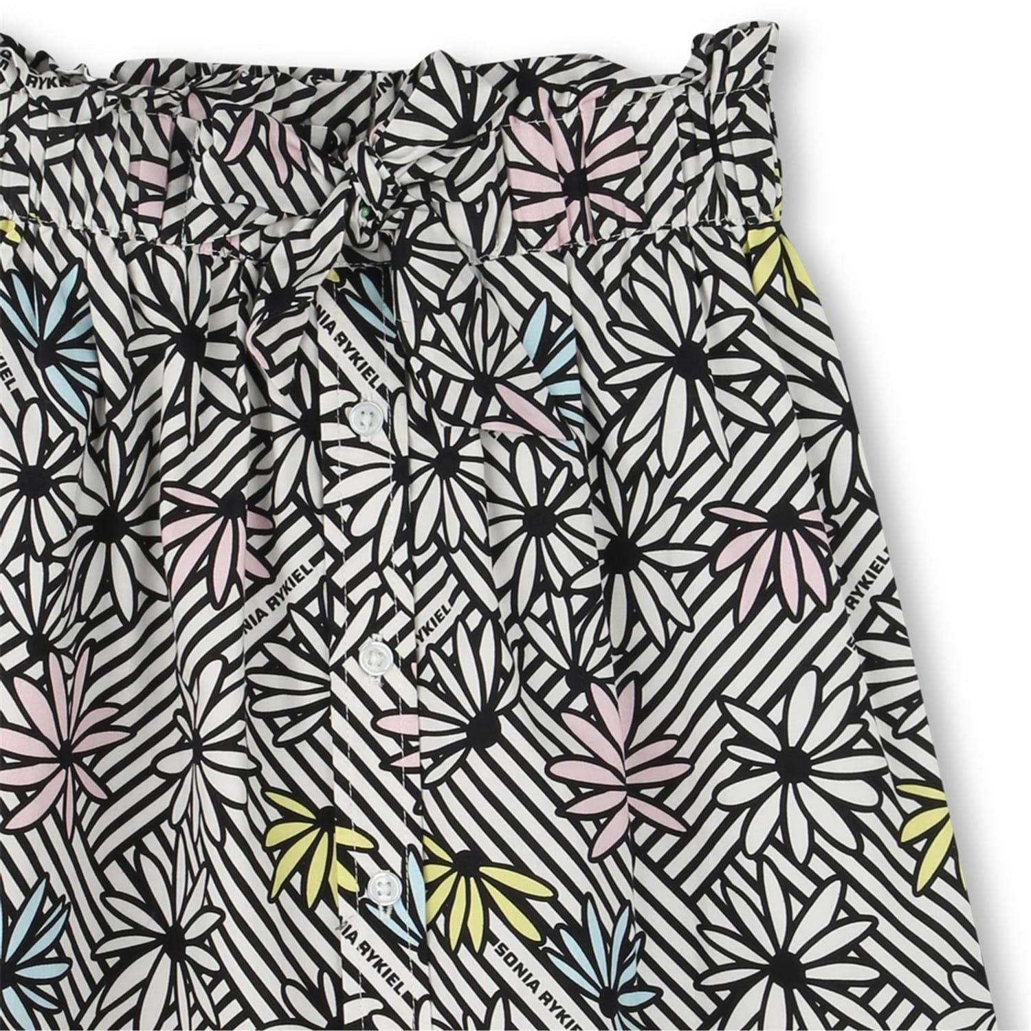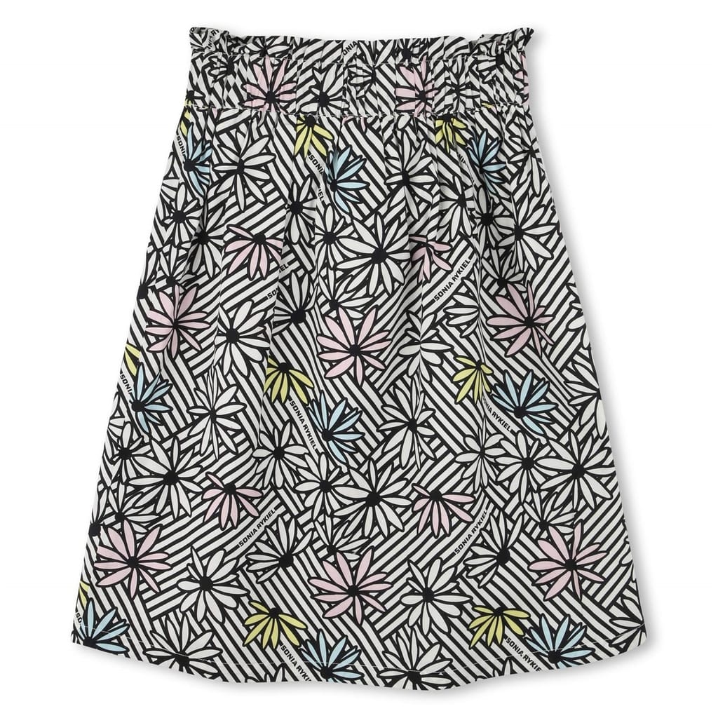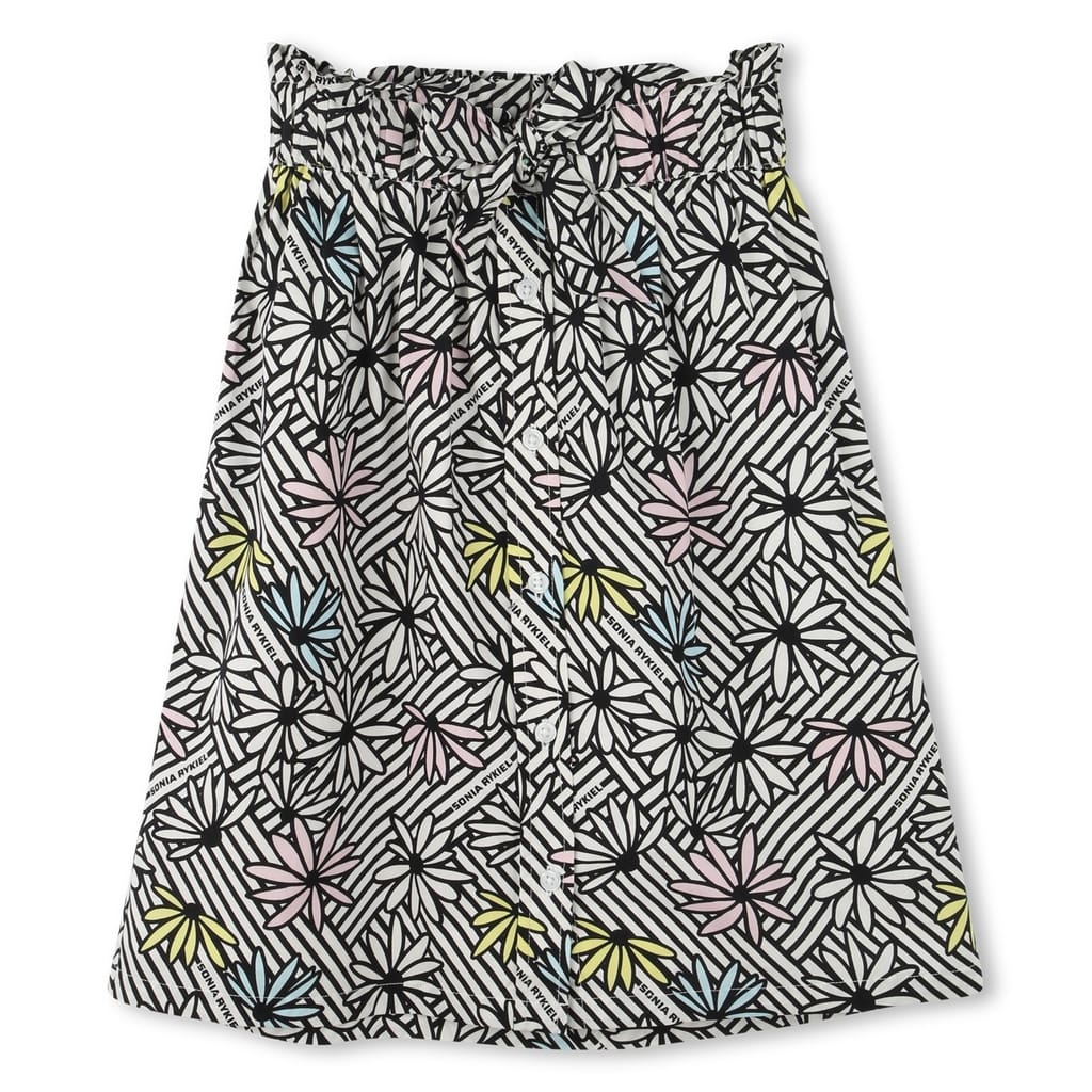 Sonia Rykiel presents a skater skirt from their casual collection, featuring a charming floral pattern. This skirt is designed with a button closure and is adorned with a subtle logo embellishment, adding a touch of elegance to its overall look. -