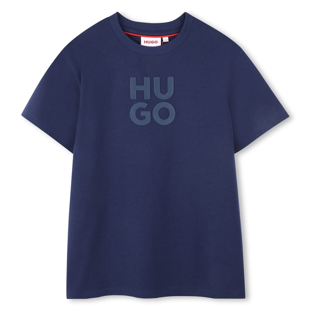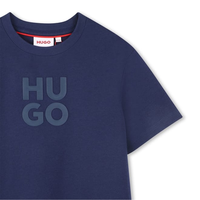 This Hugo top for infants features a regular fit and a crew neck. It showcases a graphic print with a logo embellishment, adding a touch of style to casual collections. The short sleeves make it perfect for everyday wear. -