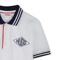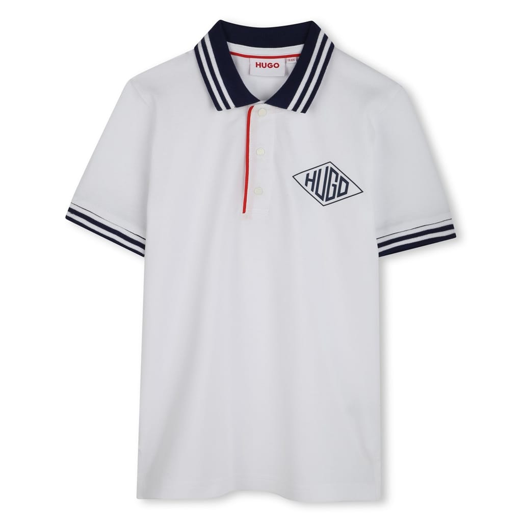 This Hugo top is a semi-formal piece designed for juniors. It features a solid print with a polo collar and short sleeves. The regular fit ensures comfort, while the button closure adds a classic touch. A subtle logo embellishment completes the look, making it a versatile addition to any wardrobe. -