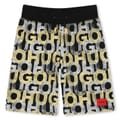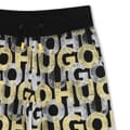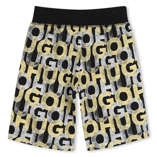 These junior sweat shorts from Hugo feature an all-over logo pattern with distinctive lettering. Designed for casual wear, they include a drawstring closure for a comfortable fit. The shorts are embellished with the brand's logo, adding a stylish touch to the print design. -