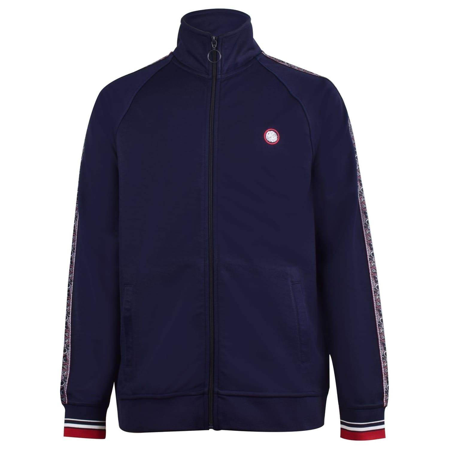 This Pretty Green top features a distinctive paisley pattern, perfect for casual occasions. It comes with a zip neck and long raglan sleeves, offering a regular fit. The ribbed cuffs add a touch of detail, while the logo embellishment subtly highlights the brand's identity. A zipper closure ensures ease of wear, making it a stylish and practical choice. -