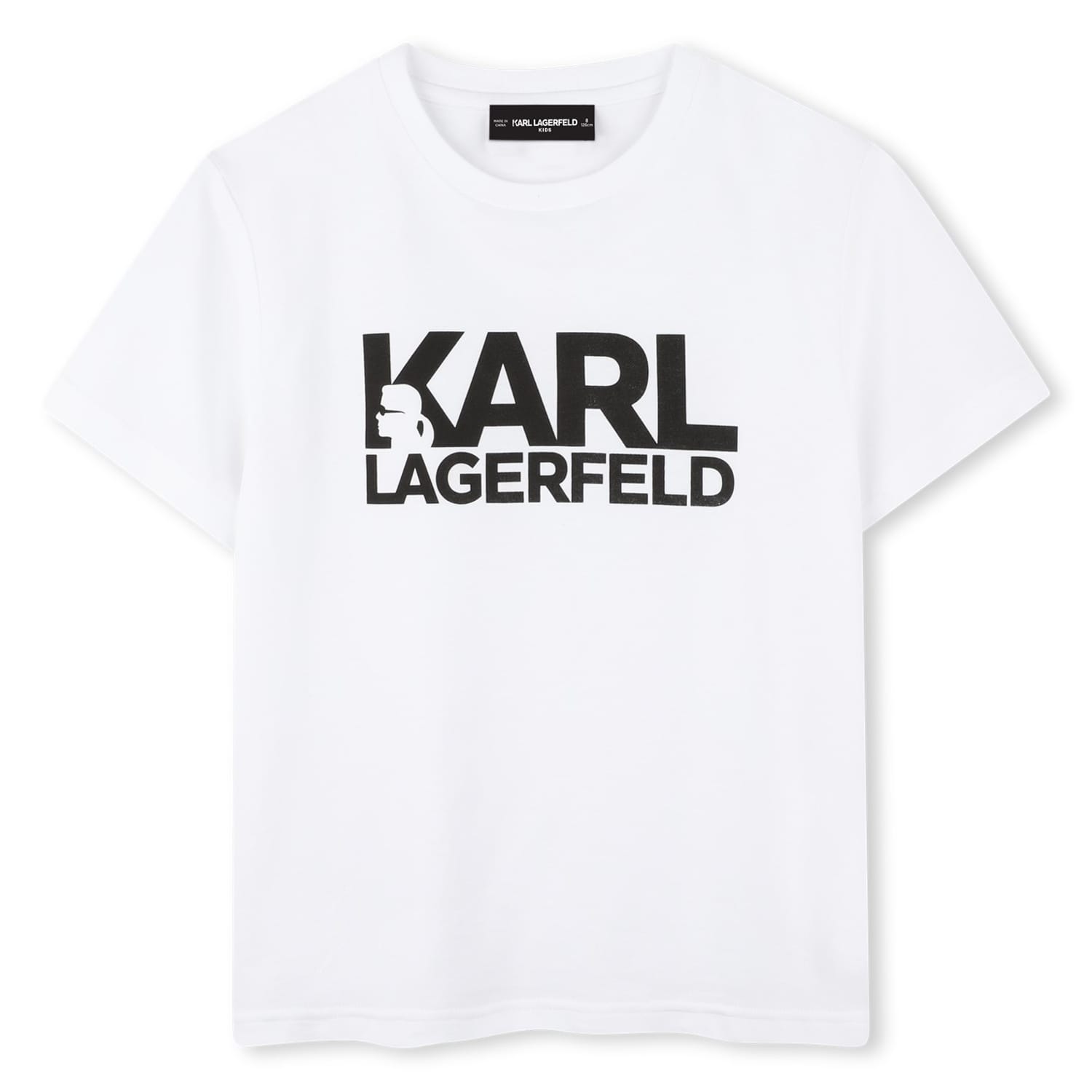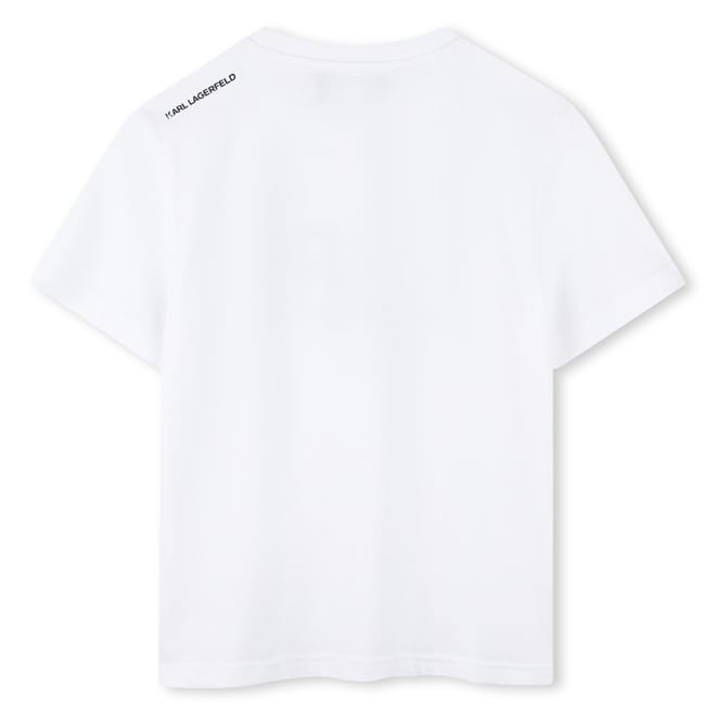 This Karl Lagerfeld top features a regular fit and short sleeves, perfect for a casual look. The crew neck design is complemented by a striking graphic print, while the logo embellishment adds a touch of brand identity. Ideal for those seeking a blend of style and comfort. -