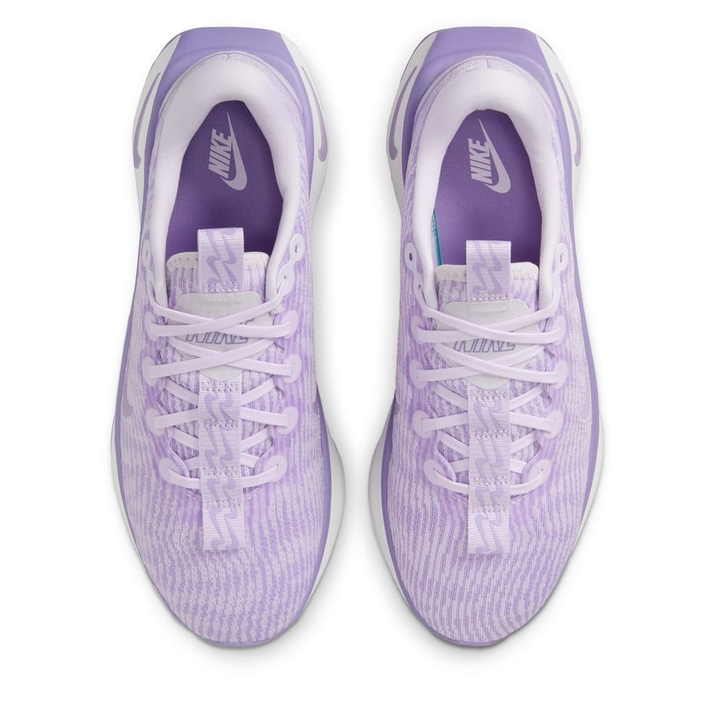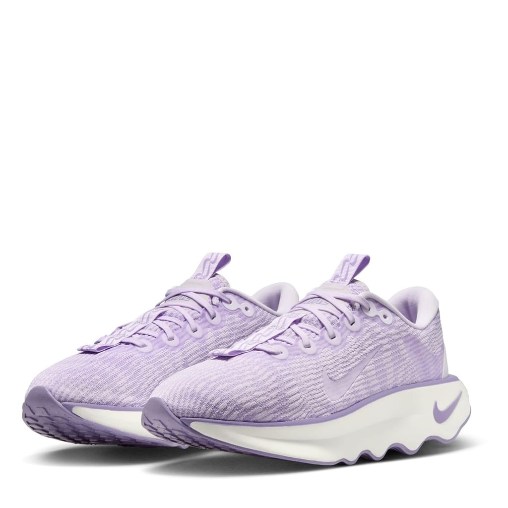 The Nike Motiva's uniquely patterned outsole and exaggerated rocker combine to give you a super-smooth, cushioned and comfortable ride. Comfortgroove innovation, a uniquely patterned outsole, absorbs the bumps along the way. It creates a sort of piston effect, which allows the foam to compress a little bit more, giving you that extra cushion needed to offset ground contact stride after stride. The exaggerated rocker on the outsole helps propel you forward and make every step you take as smooth as possible. The generative outsole pattern provides durability and traction. Soft foam waterfall collar hugs around the ankle and heel for comfort. 1/2-inner sleeve helps you get the shoe on and off with ease. It also helps reduce rubbing during your workout.