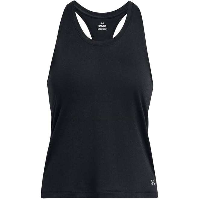 Under Armour's sleeveless top is designed for activewear enthusiasts. Featuring a scoop neck and relaxed fit, this solid-coloured piece is perfect for sporting activities. The performance-focused design is complemented by a subtle logo embellishment, making it a practical choice for those seeking both style and functionality. -