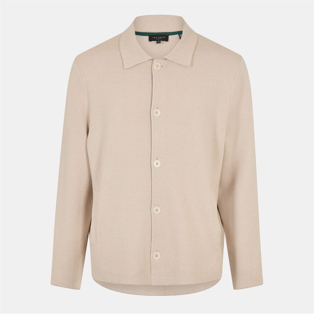 This Ted Baker overshirt features a classic shirt collar and a button closure, offering a regular fit. The herringbone pattern adds a touch of sophistication, while the curved hem provides a modern silhouette. Designed with practicality in mind, it includes pockets for added convenience. Perfect for casual occasions, this piece combines style and functionality effortlessly. -
