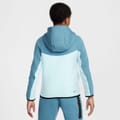 Nike tech jacket for kids features a hooded neckline and a full zipper closure. The raglan sleeves and ribbed cuffs provide a comfortable fit, while the ribbed hem adds a stylish touch. The color block pattern and logo embellishment enhance its sporty appeal. Designed in a regular fit, this sweatshirt-style jacket is perfect for active youngsters. -