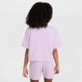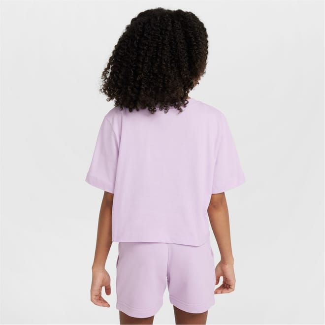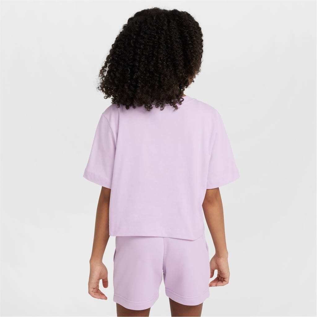 The Nike Futura cropped top is a casual essential, featuring a relaxed fit and short sleeves. It showcases a crew neck and a striking large genie graphic print, complemented by a logo embellishment. Perfect for those who appreciate a blend of comfort and style. -