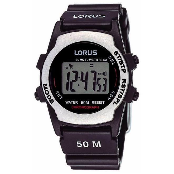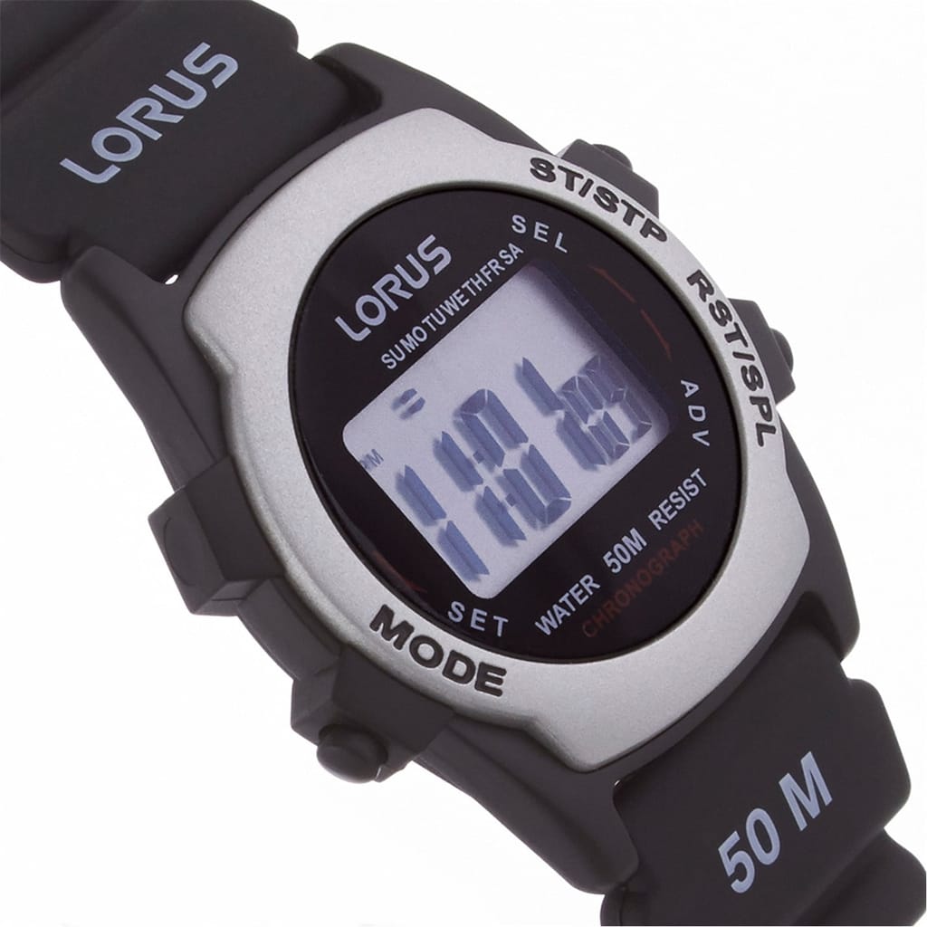 Discover the Lorus wrist watch, a sleek digital timepiece designed for modern functionality. Featuring a striking black dial, this watch is complemented by a durable rubber strap, ensuring comfort and style. With water resistance up to 50m, it is perfect for everyday use, offering reliability and precision in every moment. -