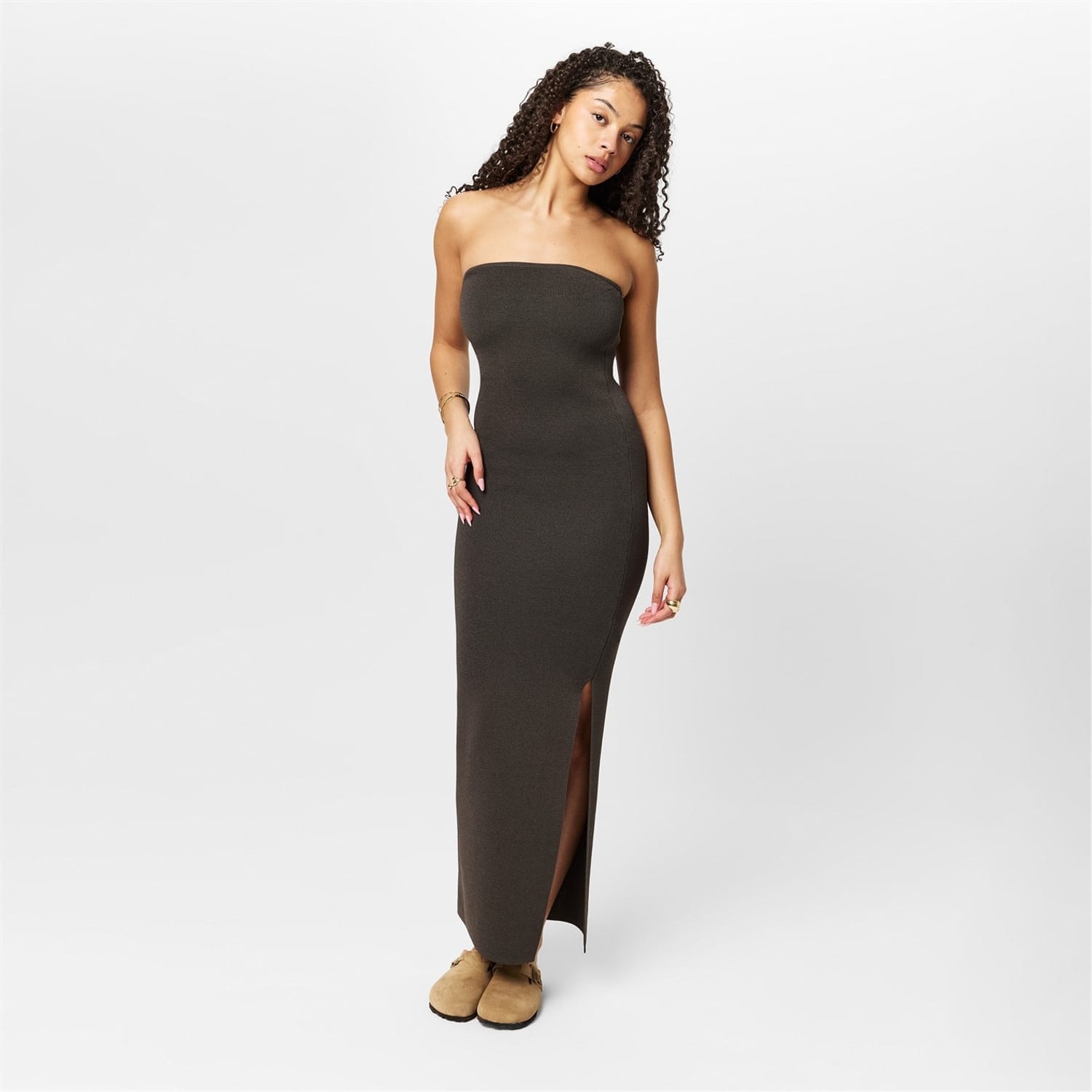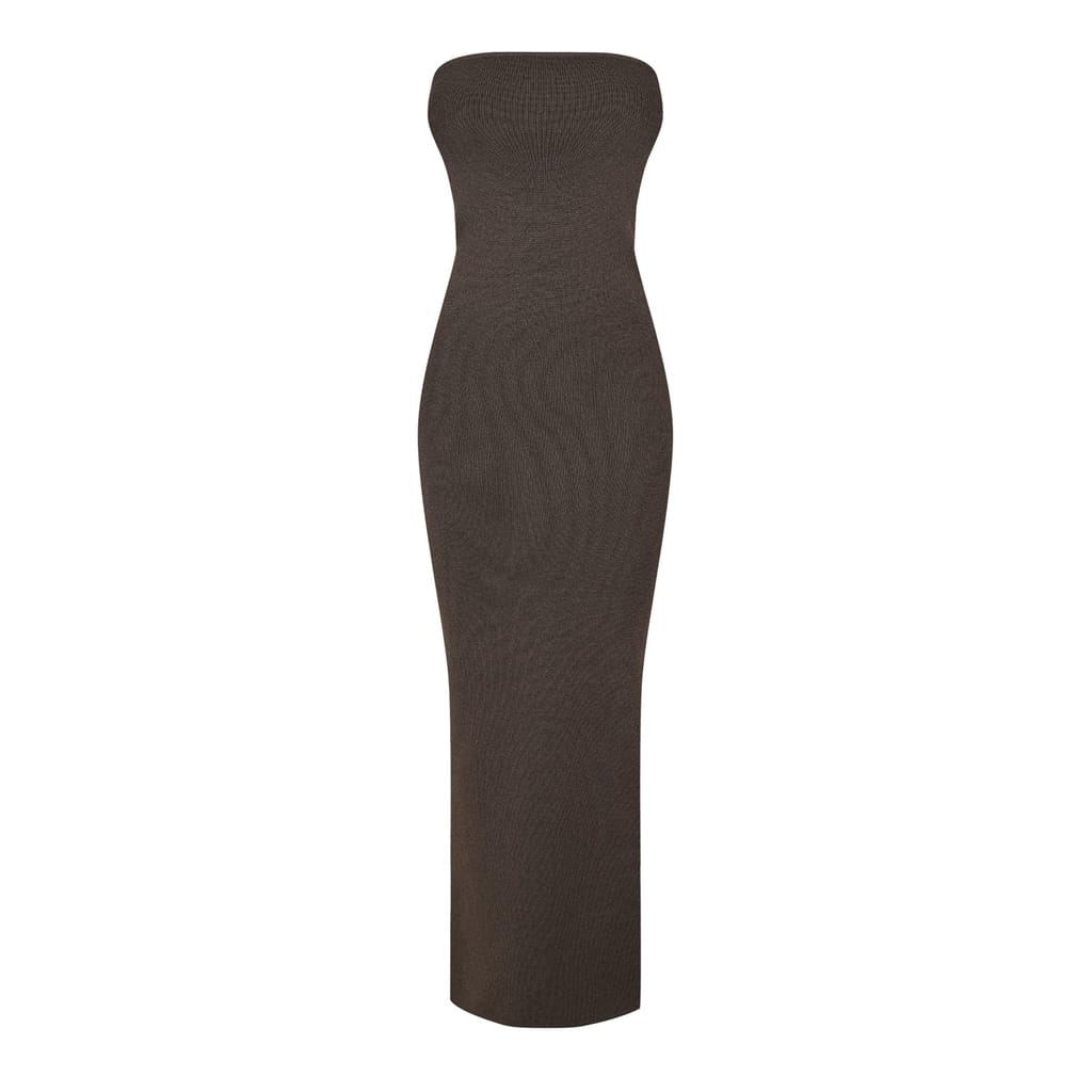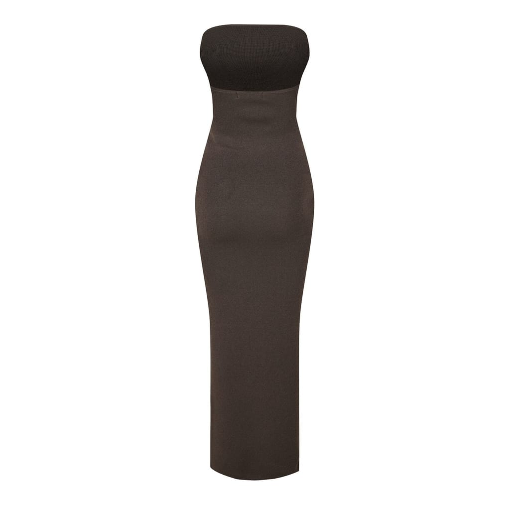 This Jack Wills bandeau dress is a stunning maxi piece, perfect for any occasion. Crafted with a ribbed knit design, it offers a slim fit that elegantly contours the body. The sleeveless style enhances its sophisticated appeal, making it a versatile addition to your wardrobe. -