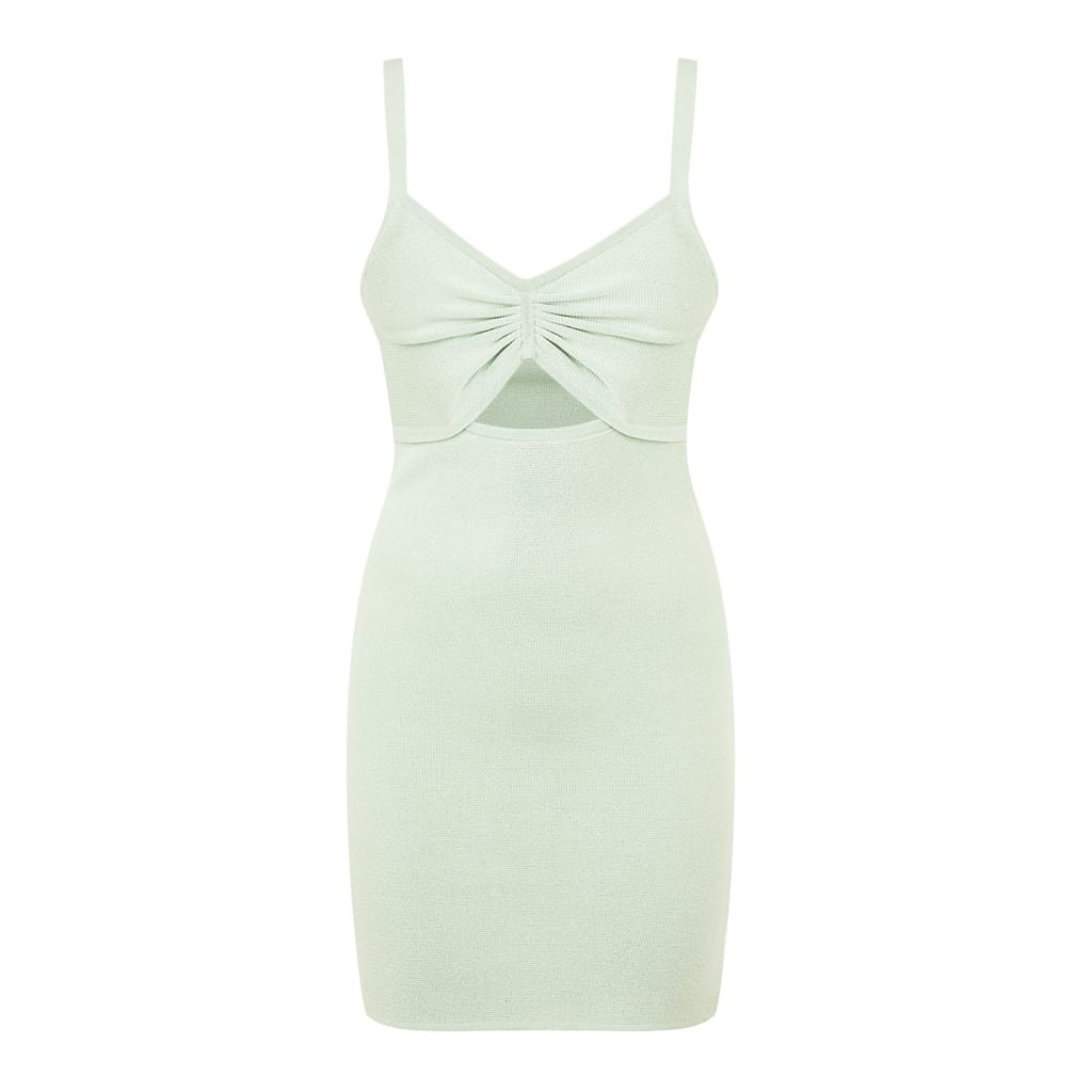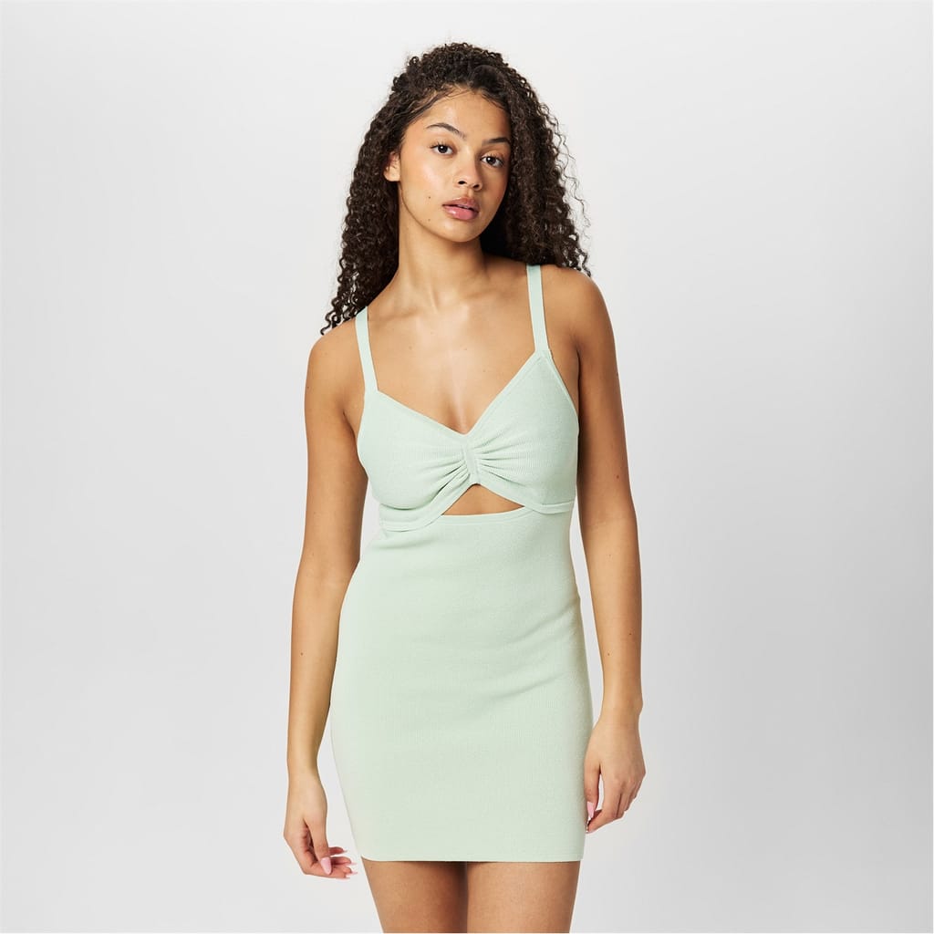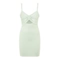 This Jack Wills mini dress is a stylish slip design featuring a V-neck and spaghetti straps. Crafted from knit material, it offers a slim fit with a solid pattern. The dress is enhanced with cut-out embellishments and a straight hem, making it a chic choice for any occasion. -