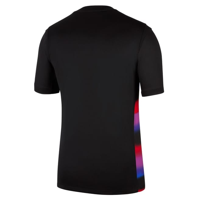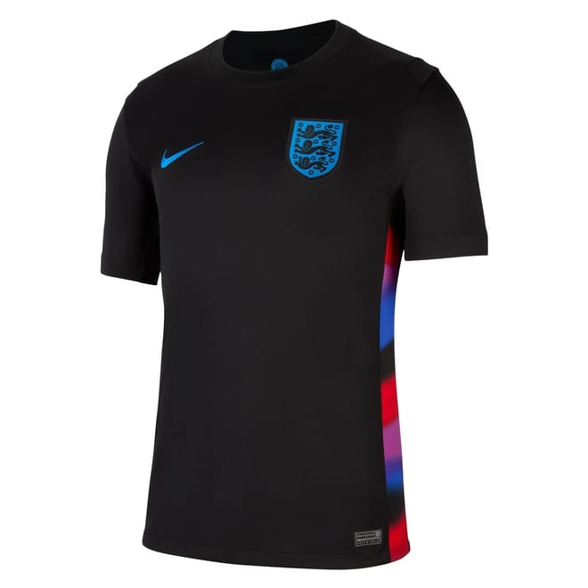 Show your support for the Lionesses with the Nike England Away Shirt 2025. Set to be worn at the Euros, this sleek black jersey features subtle rose detailing inside the neck for a nod to national pride. Crafted with sweat-wicking Dri-FIT technology to help keep you dry and comfortable, it’s ideal for match days, streetwear styling, or training sessions.