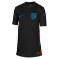 Let young fans back the Lionesses in style with the Nike England Away Shirt 2025. Set to be worn at the Euros, this black shirt features subtle rose detailing inside the neck for a touch of national pride. Made with sweat-wicking Dri-FIT to keep them cool and comfy, it’s perfect for school sports, match days, or casual wear.