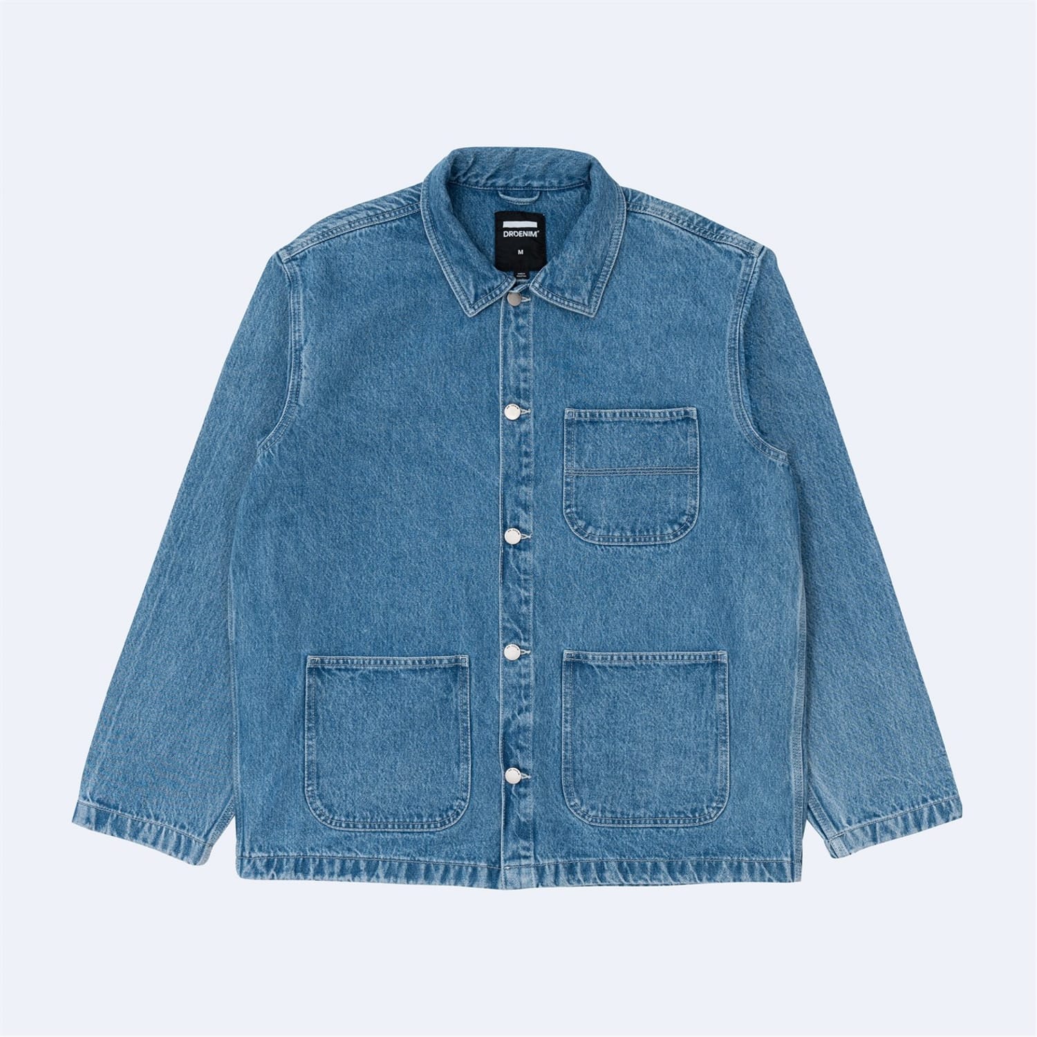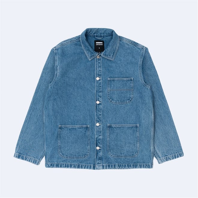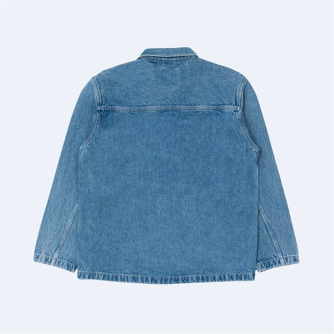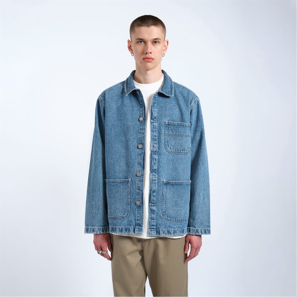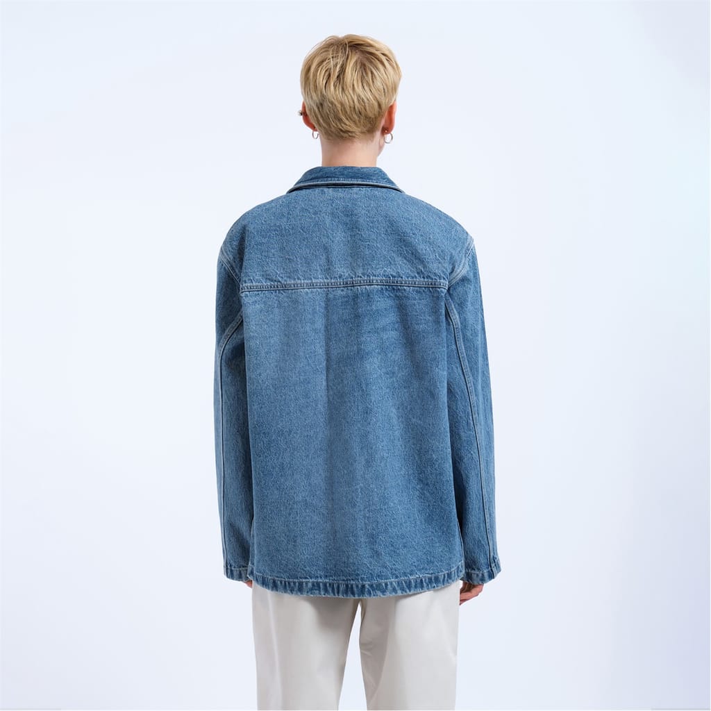 Denim jacket with dropped shoulders and classic worker-style detailing. -