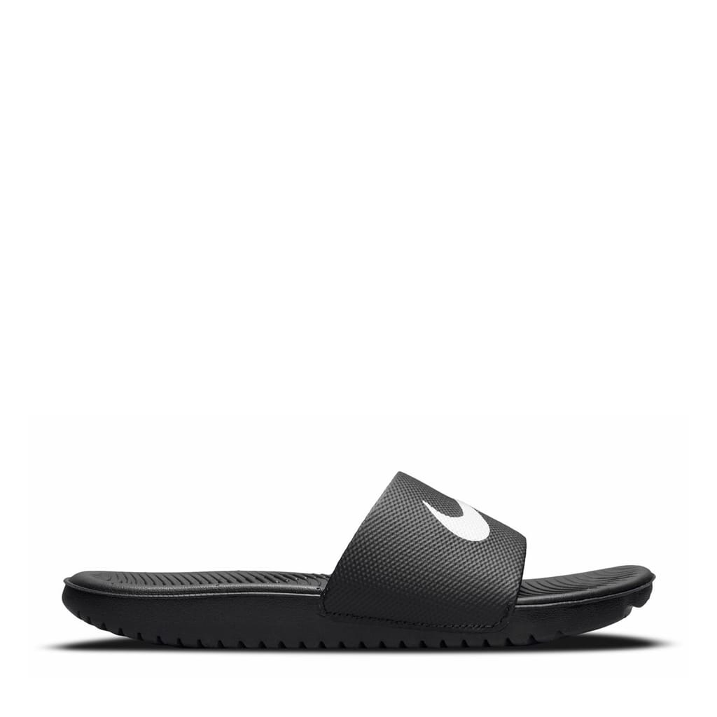 The Nike Kawa Little/Big Kids' Pool Sliders are perfect for the summer holidays, featuring a moulded construction with a wide forefoot strap and a contoured footbed that ensures comfort with every step, a solid colouring along with the classic Nike Swoosh branding to the forefoot completes the look. -