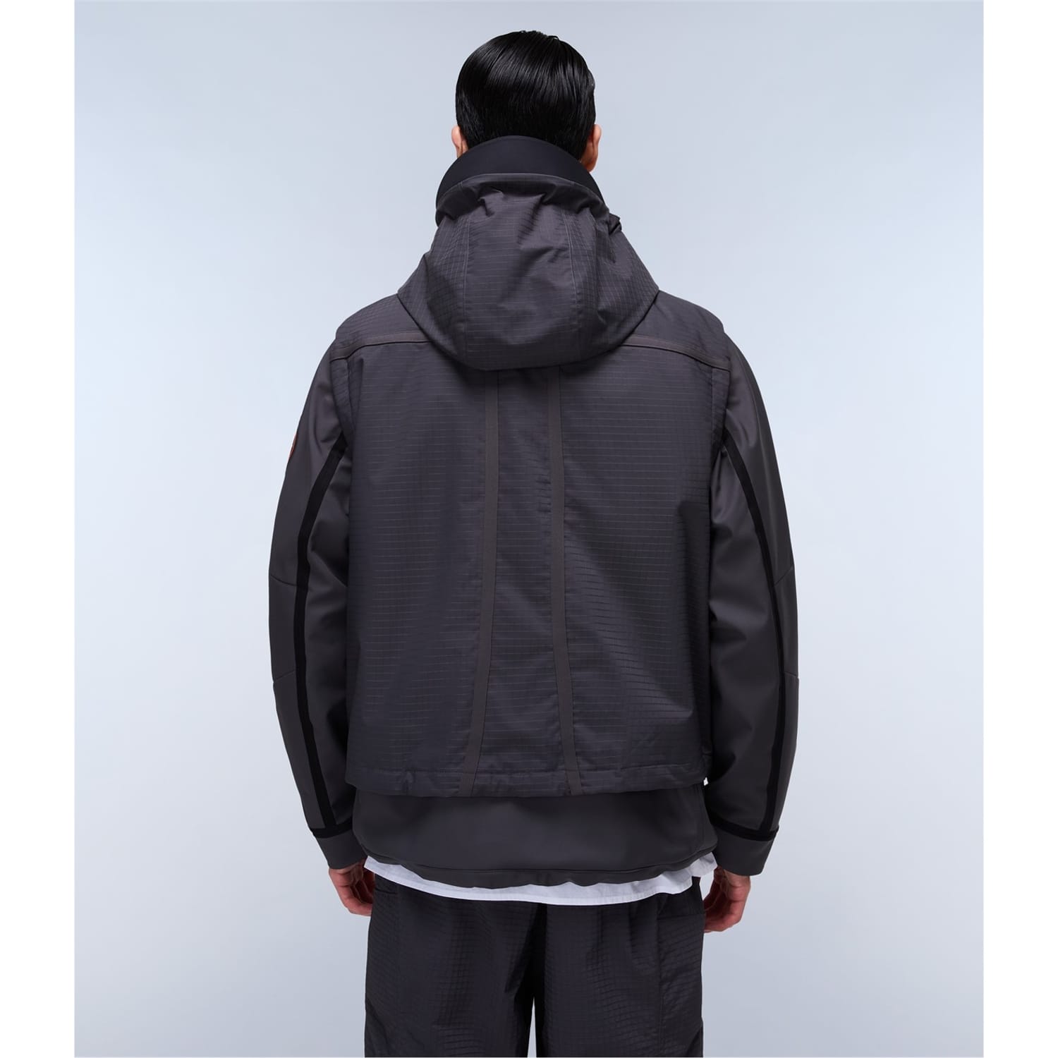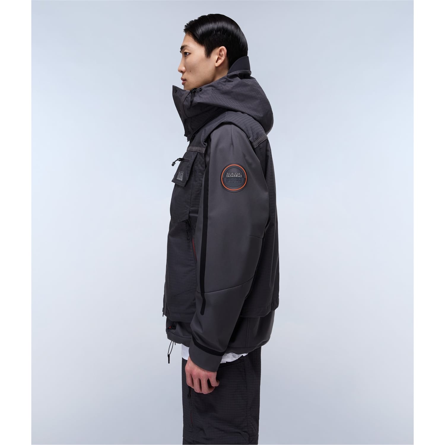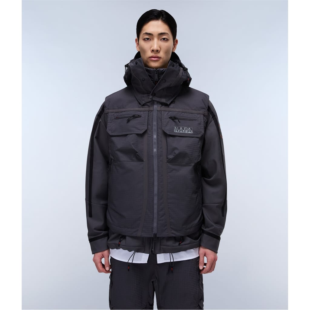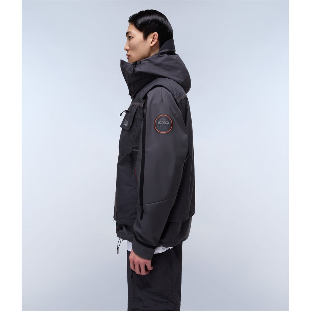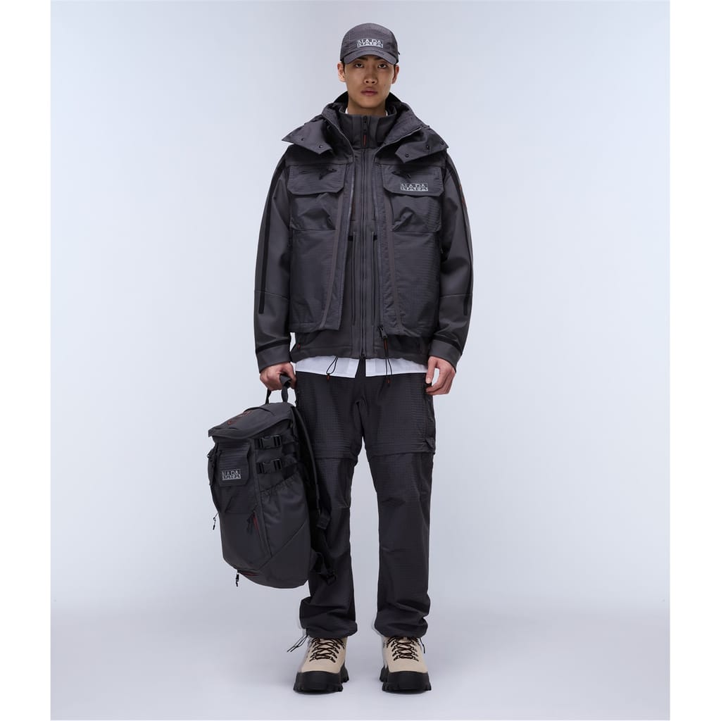 This Napapijri rain jacket is designed with a hooded neckline and a relaxed fit, offering both style and functionality. It features a water-repellent finish, ensuring protection against the elements. The jacket includes a zipper and snap button closure, complemented by practical embellishments such as pockets, a logo, a badge, a chest pocket, and front zipper pockets. The solid pattern and straight hem complete the look. -