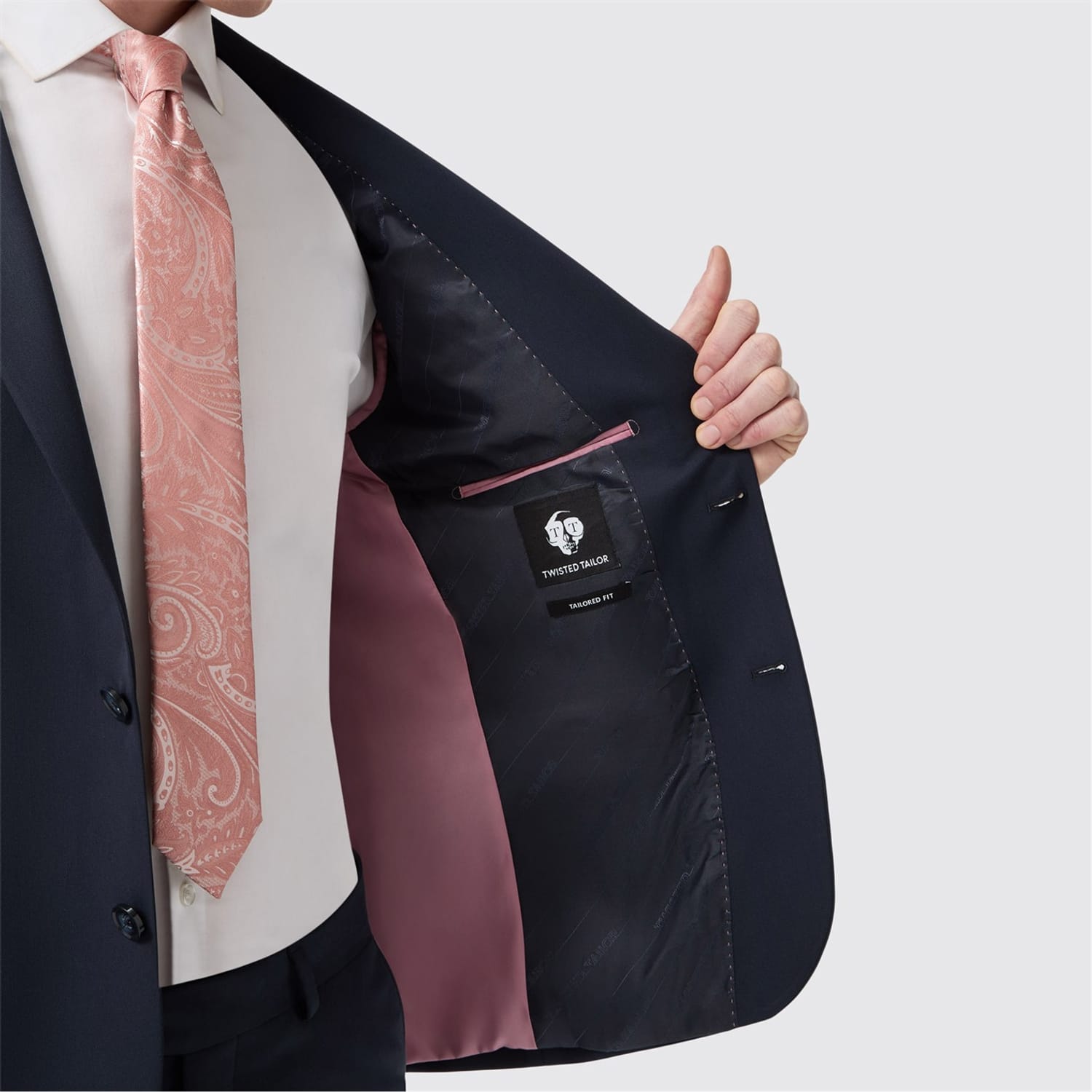 The Ellroy suit by Twisted Tailor is a modern take on the classic suit. Cut to a timeless TAILORED FIT it's an understated men's suit that makes a big impact. The jacket features four way stretch fabric for easy movement and comfortable fit. Designed with notch lapel, straight flap pockets, an outer breast welt pocket & five kissing buttons including the signature TT branded skull button. Wear for any occasion; from the boardroom to the bar, to the aisle. Pair with the matching TAILORED FIT suit trousers for a super sharp 2-piece.