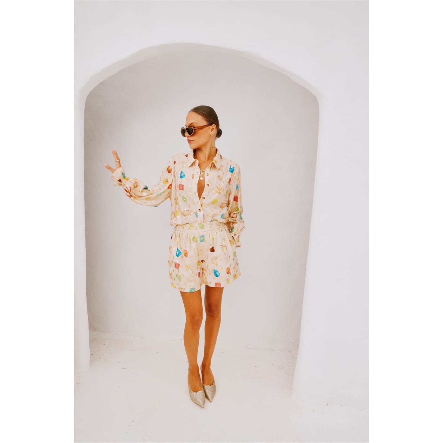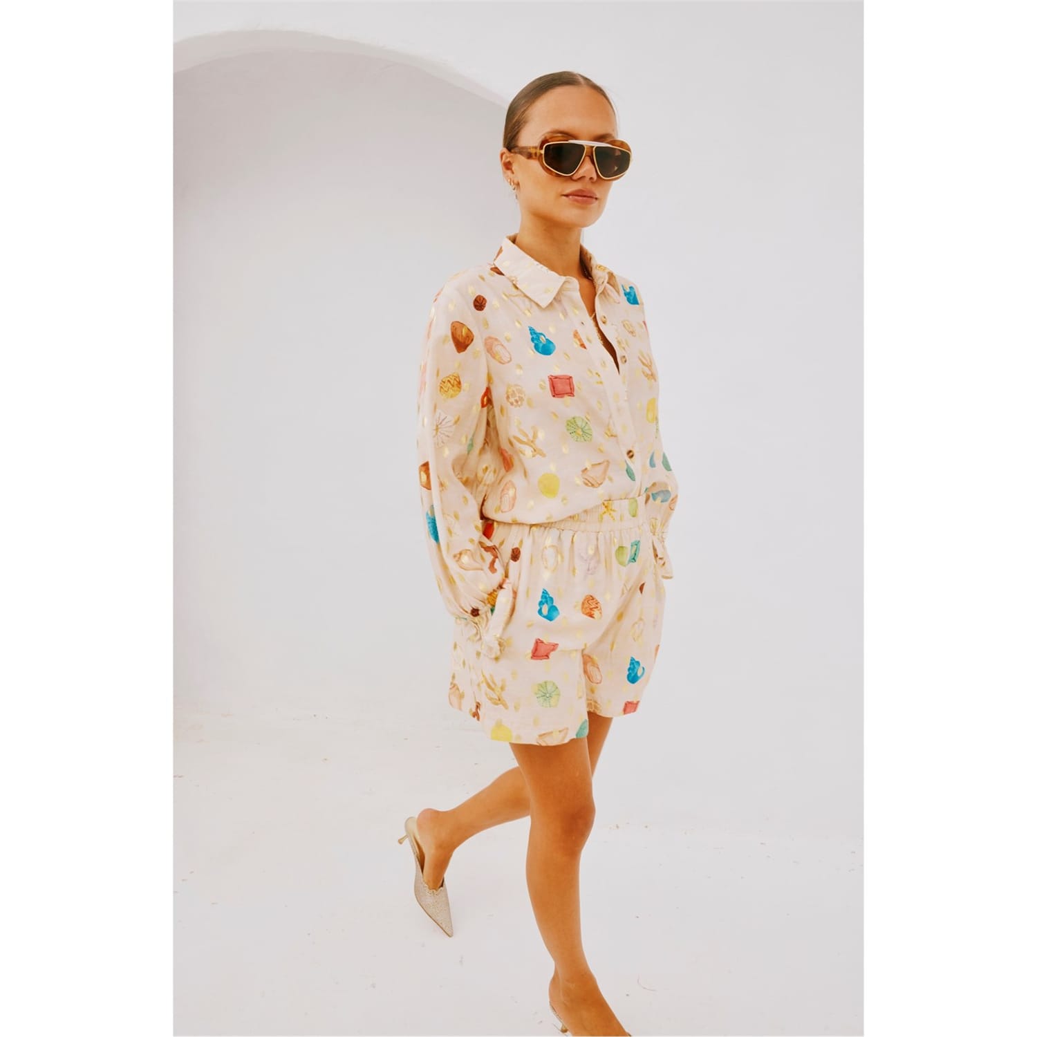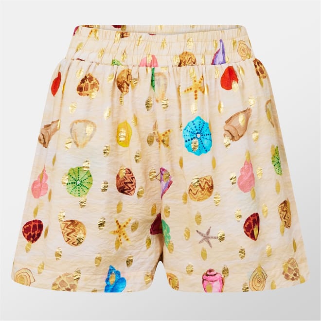 These Never Fully Dressed shorts are perfect for a beach day. Featuring a graphic print, they are crafted from woven material for a comfortable fit. The elasticated waistband ensures ease of wear, while the pockets add a practical touch. Ideal for those seeking a stylish yet functional addition to their summer wardrobe. -