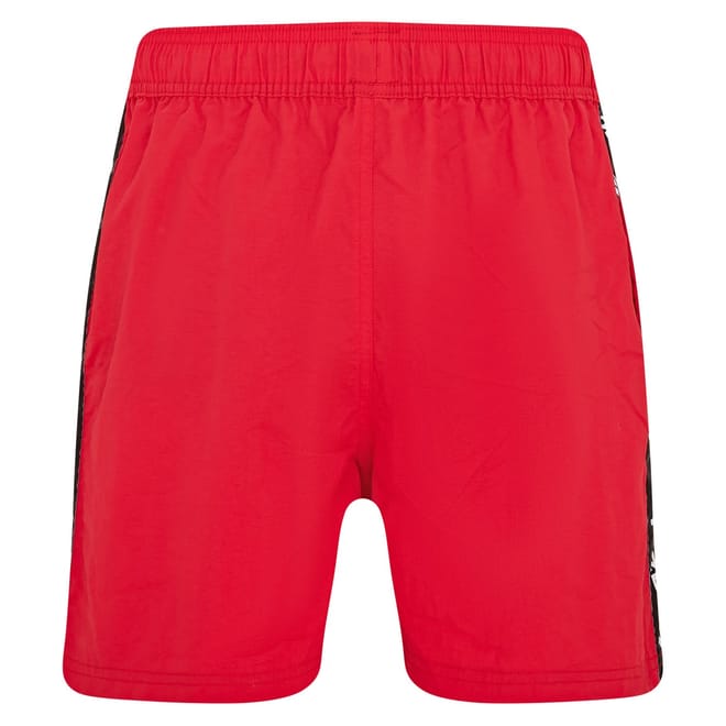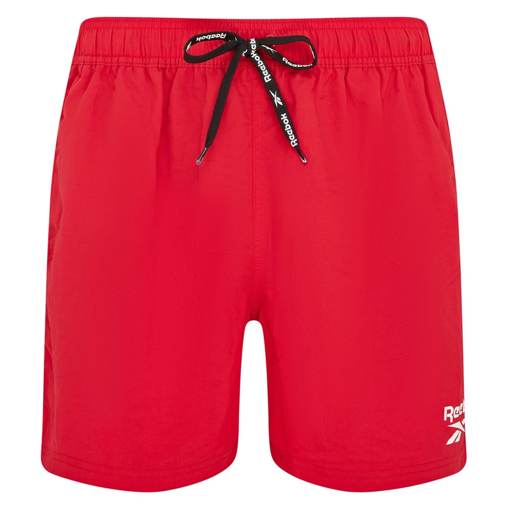 - Stand out this summer in the Reebok Duke Red Swim Shorts - designed for dynamic style and functional comfort. These regular-length swim trunks feature bold Reebok-branded side seam tape and drawcord, adding a sporty edge to a classic solid red look.