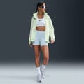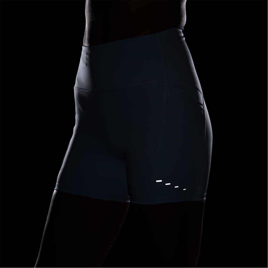 Nike athletic shorts from the activewear collection, featuring a solid pattern and compression fit. These shorts include a zipper closure and are embellished with a logo and side pocket for added functionality. -