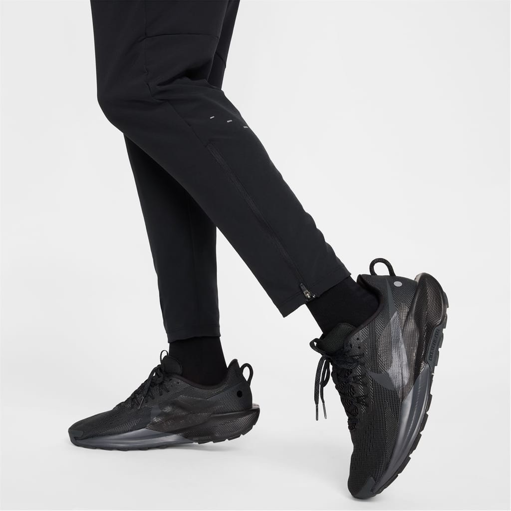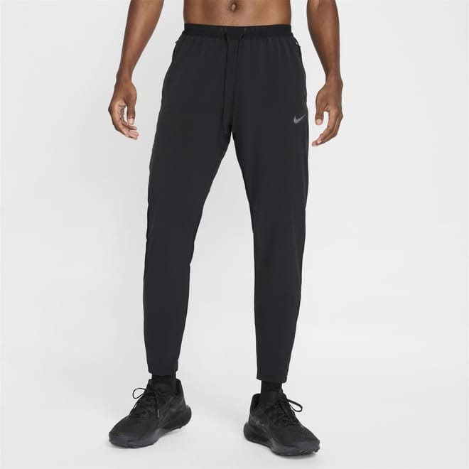 Nike athletic pants are designed for running enthusiasts. Crafted with dri-fit and woven materials, they ensure optimal performance. Featuring a drawstring and zipper closure, these regular fit pants offer comfort and functionality. The design includes a logo and zipped pocket, making them a practical choice for activewear collections. -