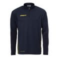 This Uhlsport sweatshirt is designed for training and features a regular fit with long sleeves. It has a quarter zipper closure, adding a touch of practicality. The zip neck style is complemented by the logo embellishment, making it both functional and stylish for athletic activities. -