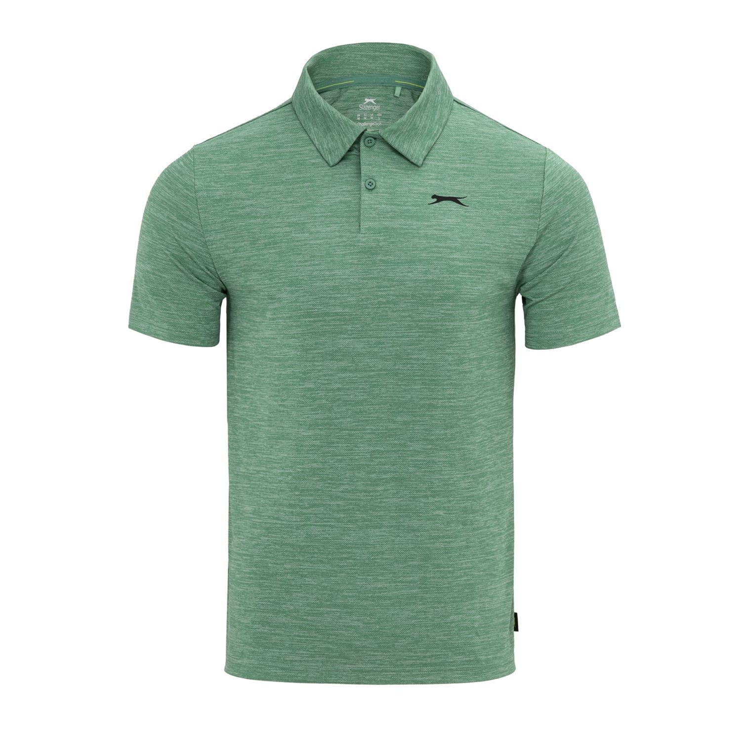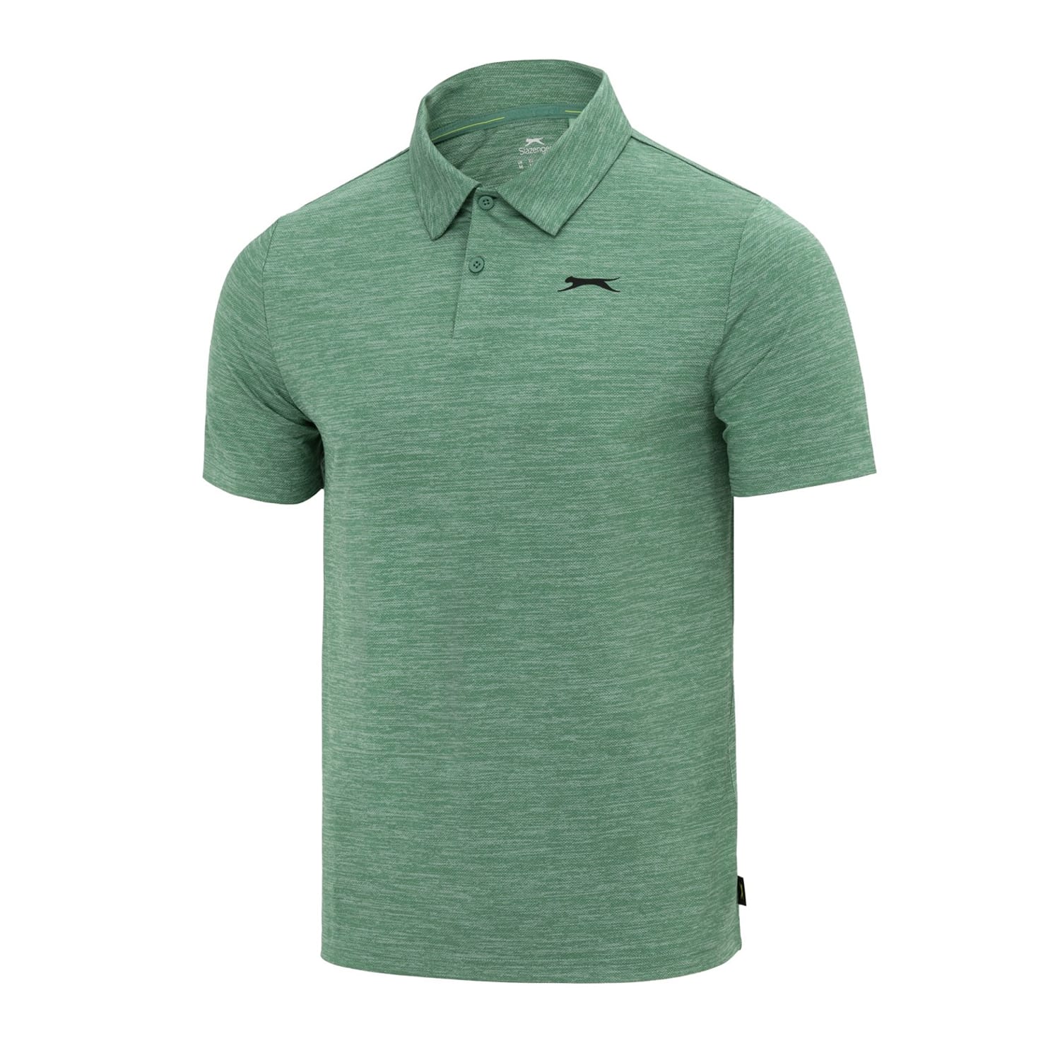 - This Slazenger Golf Solid Polo Shirt Mens is crafted with a folded collar and a two button placket for a secure fit. It features short sleeves for a classic look and is a lightweight construction. This polo shirt is a solid colouring throughout designed with a signature logo and is complete with Slazenger branding.